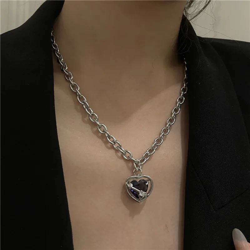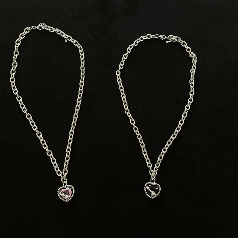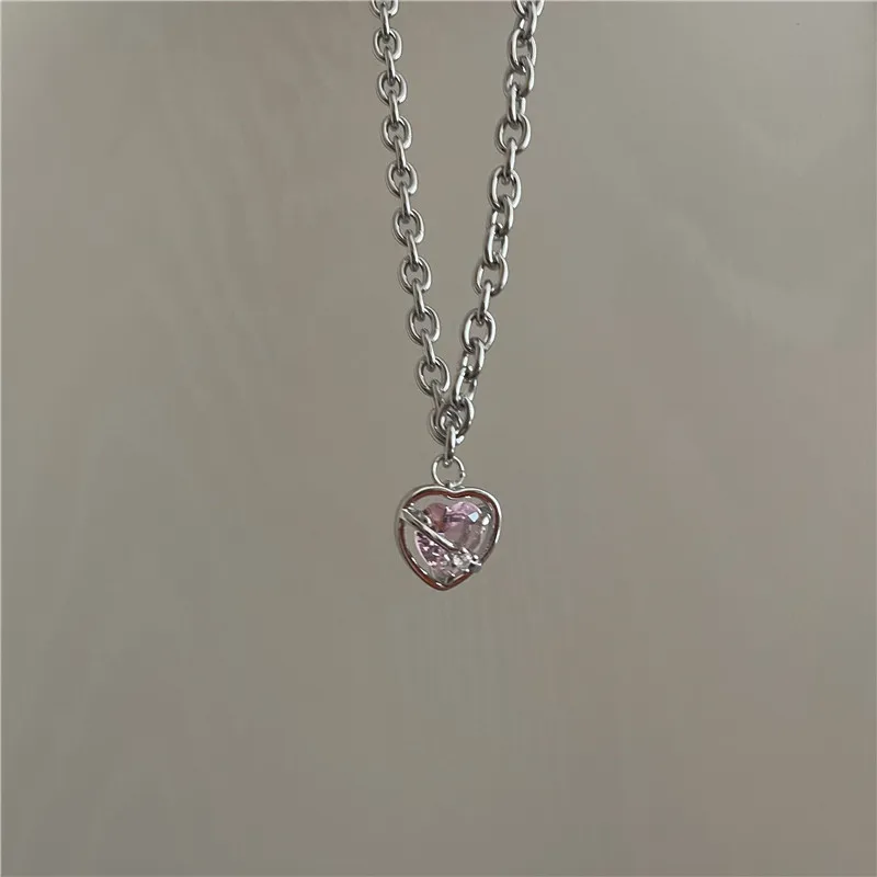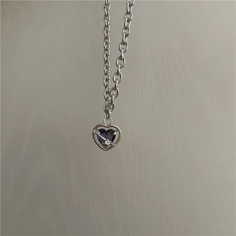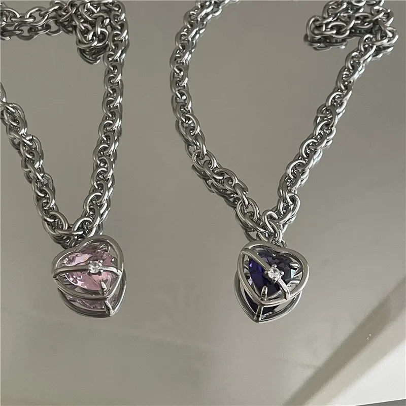 Розовый фиолетовый кристалл сердце кулон титановая стальная цепочка ожерелье
