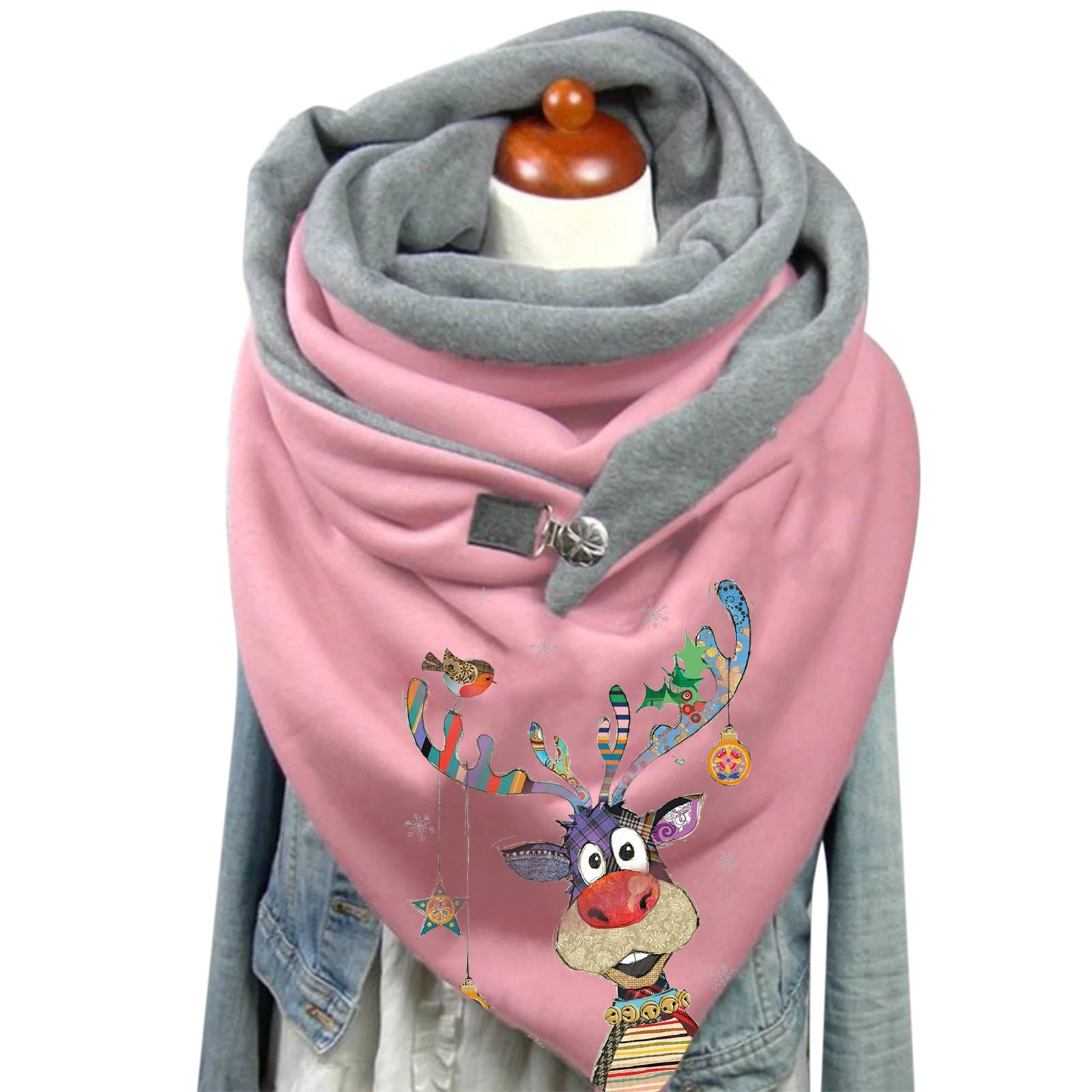 Модные женские повседневные теплые шарфы на пуговицах с принтом