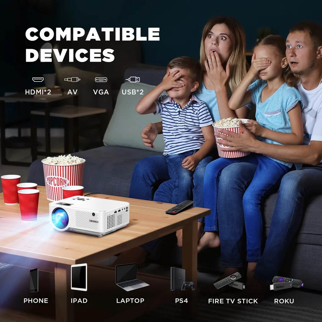 3.07lb вес, очень портативный и компактный проектор, так что вы можете взять его в любом месте. До 300 ''экран, наслаждайтесь шоу на большом экране, как в кинотеатре.