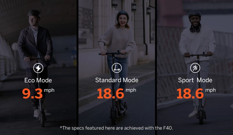 * Диапазон 25 миль и 18,6 миль в час представлены здесь для Ninebot F40.