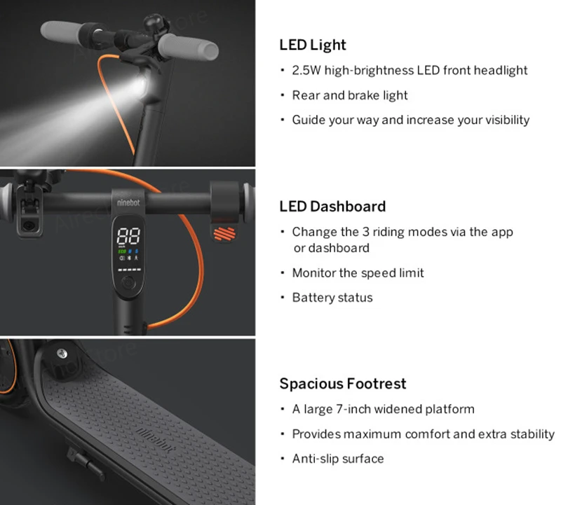 Легко переключаться между тремя режимами езды с двумя кликами на интуитивно понятной светодиодный приборной панели, что позволяет вам ездить так, как вы хотите. Три режима включают режим Eco, стандартный режим и спортивный режим.
