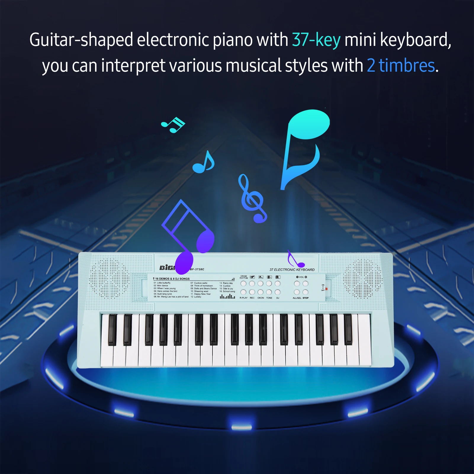 Электронная клавиатура фортепиано с 37-клавишная клавиатура, можно рассматривать различные музыкальные стили с 2 тембров.
