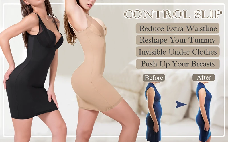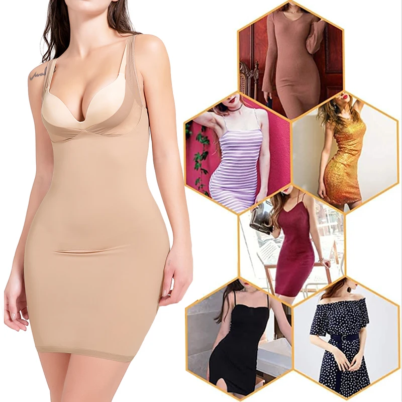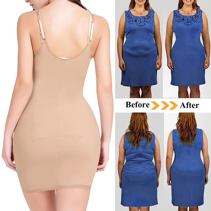 Женское платье-комбинация shapewear изготовлено из нейлона, 75%, спандекса 25%, который пропускает воздух и растягивается. Отличный материал обладает комфортным прикосновением, хорошей гибкостью и тонкой воздухопроницаемостью.