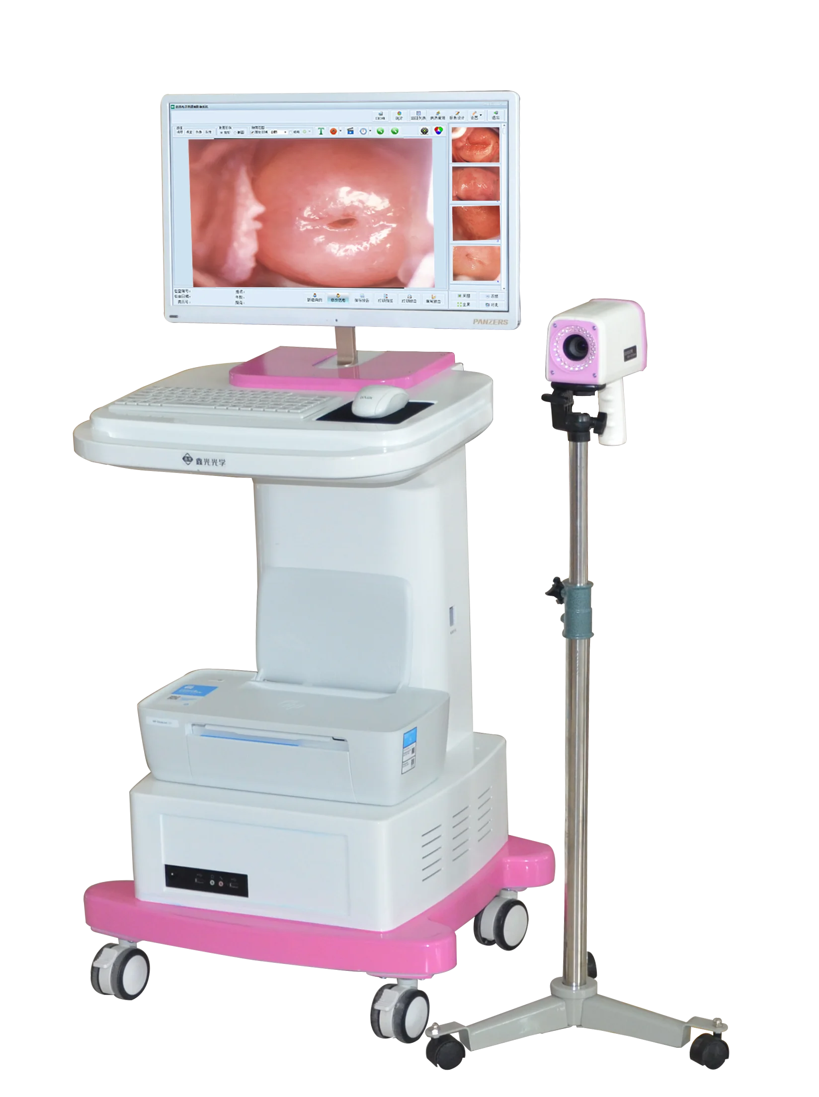 Hot Sale Gynecology Portable Electronic video Colposcope for Gynecologic SurgeryOuman microscope colposcope is a precise optical instruments designed specially for the gynecologic examination and diagnosis. Because the magnification of the microscope colposcope, the pathological changes in the vagina, which is impossibly viewed with naked eyes, can be clearly seen with the instrument. The correctness of a diagnosis is enhanced significantly. Ouman colposcope is featured for sharp image, wide field of view, uniform illumination, adjustable brightness and easy operation. It is the essential instrument for gynecology examination.Optical zoom18XWorking distance215mm & 260mmTotal magnification18XLinear field11mm-84mmBeam splitter50:50 beam splitterTV adapterC-mount 1/3-inch CCD attachablePhoto adapterOptionalFine focus distance20mmIllumination systemCoaxial illumination with cold light source fiber-optic cable