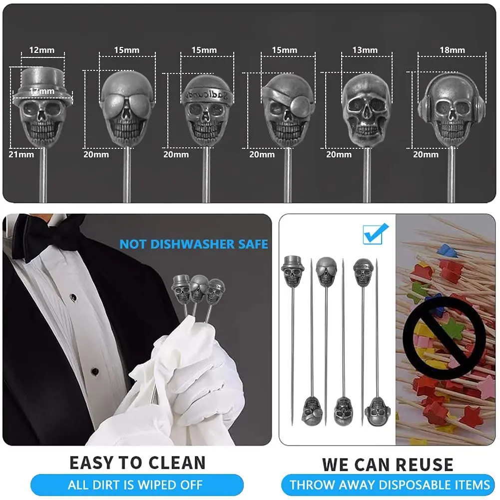 Креативные топы, изготовленные из 6 предметов, cocktail spears mix, поставляются с реалистичной одеждой в виде черепа с высокой шляпой, Одноглазого черепа, в наушниках с черепом, в повседневной шляпе с черепом, носите очки с черепами и обычным черепом.
