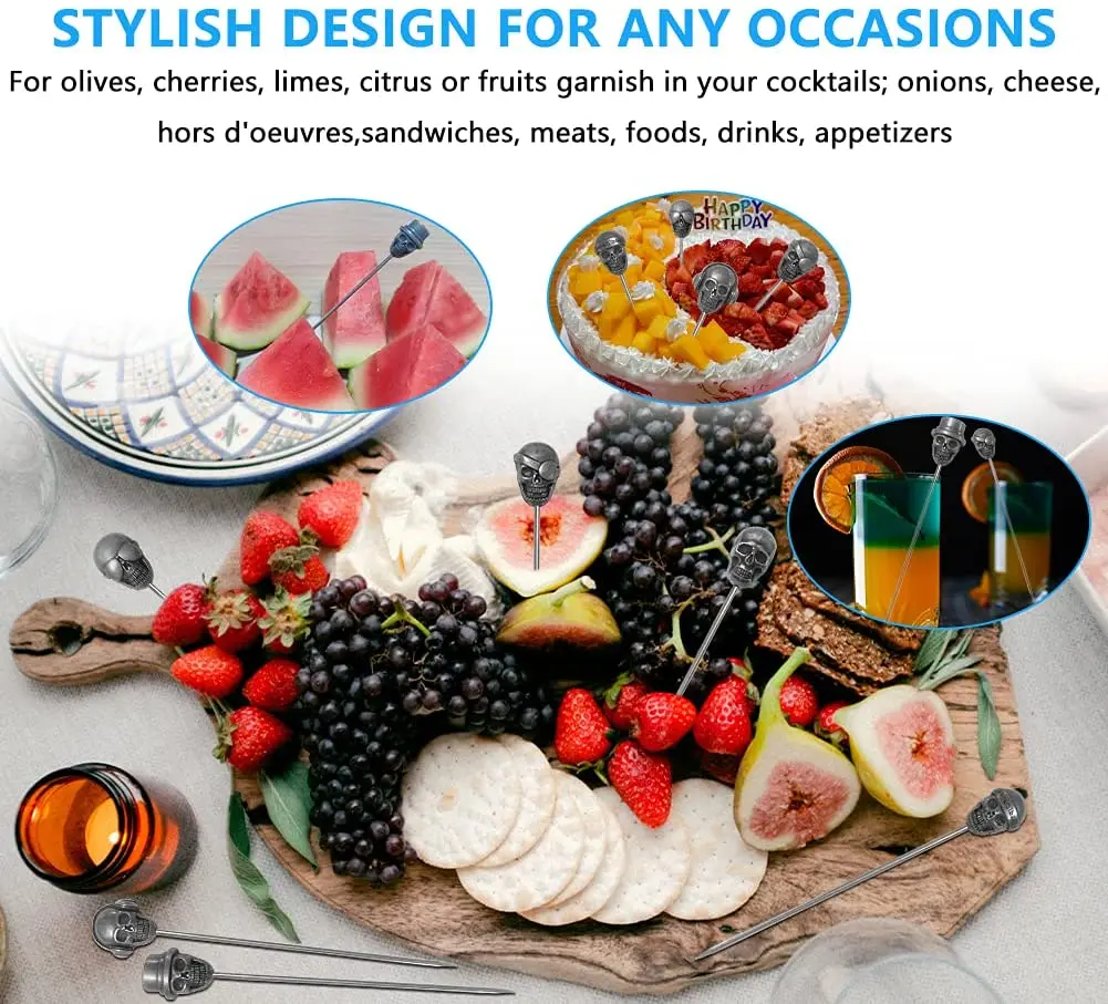 Материал, покрытый этим коктейльным гарниром, изготовлен из нержавеющей стали 18/8 класса 304 для повышения коррозионной стойкости, продления срока службы. Череп изготовлен из цинкового сплава. Наши модели придают более изысканный вид вашим коктейлям.