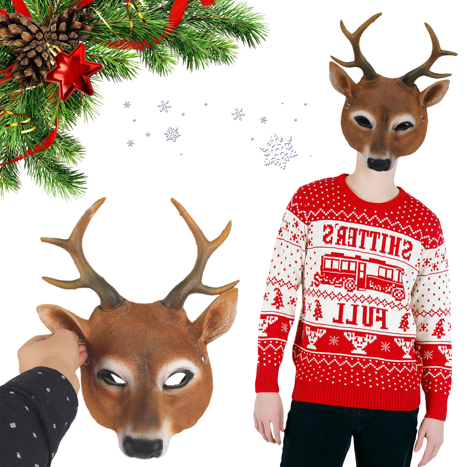 Вечерние латексные маски для головы оленя на Хэллоуин, Рождественские 3D Реалистичные Маски для лица с животными, Косплей Аниме на Хэллоуин