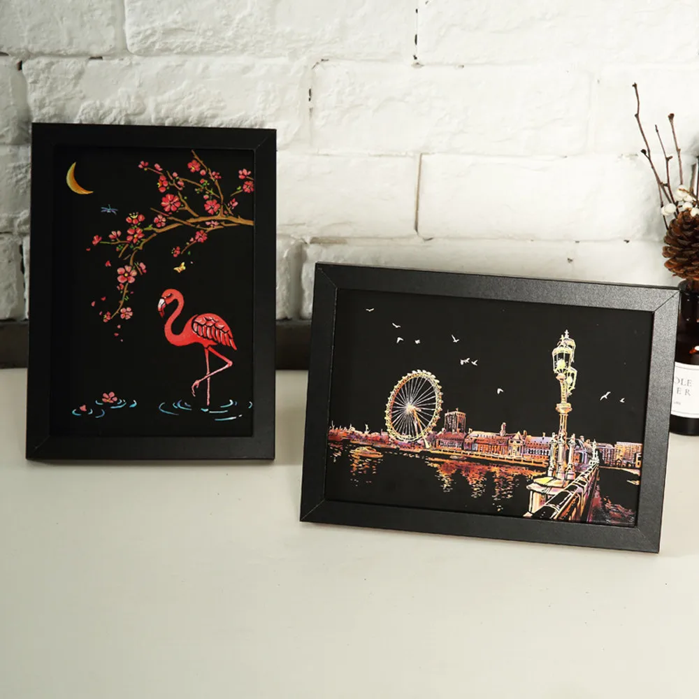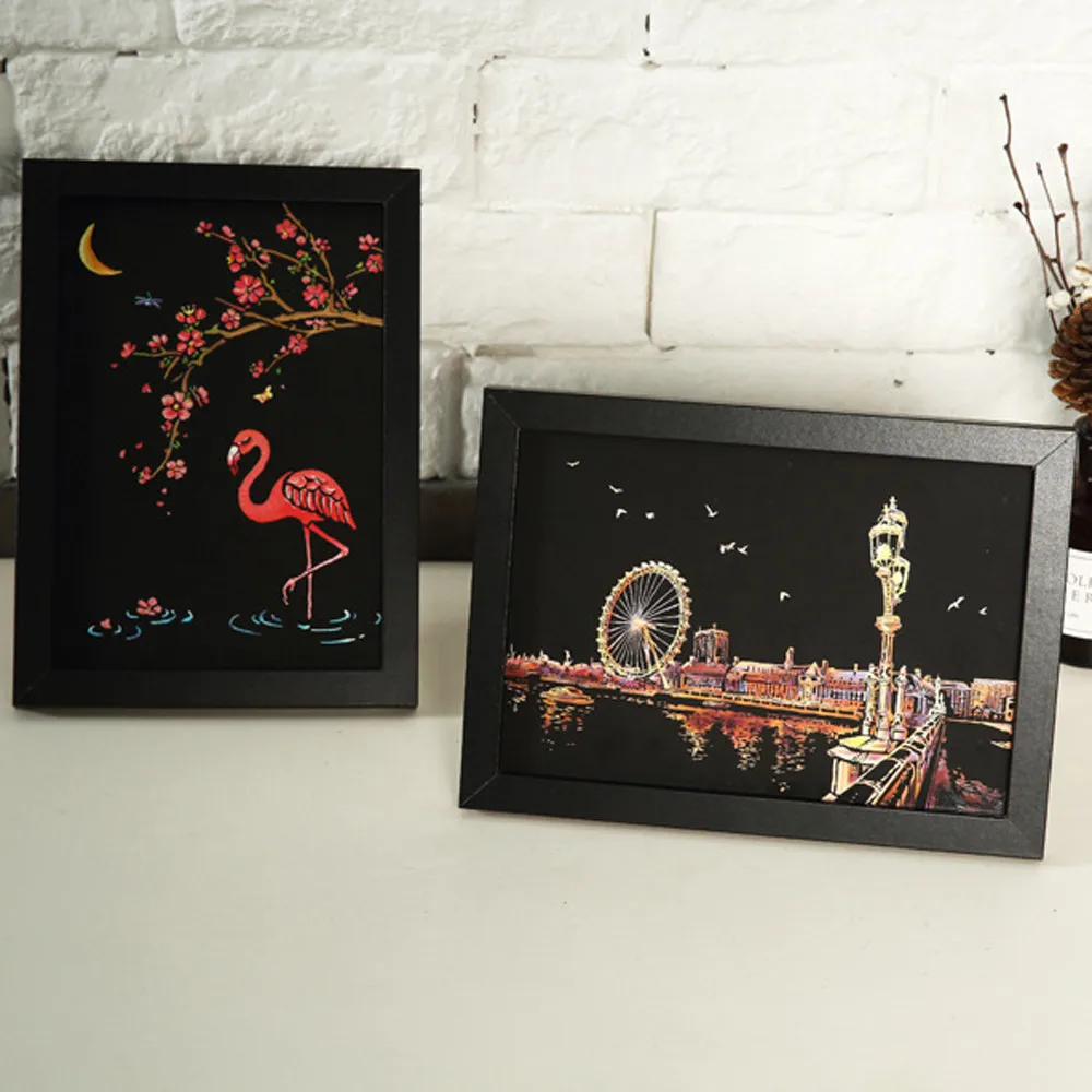 Игрушки для детей-дети могут создать красочное искусство, поцарапав черный