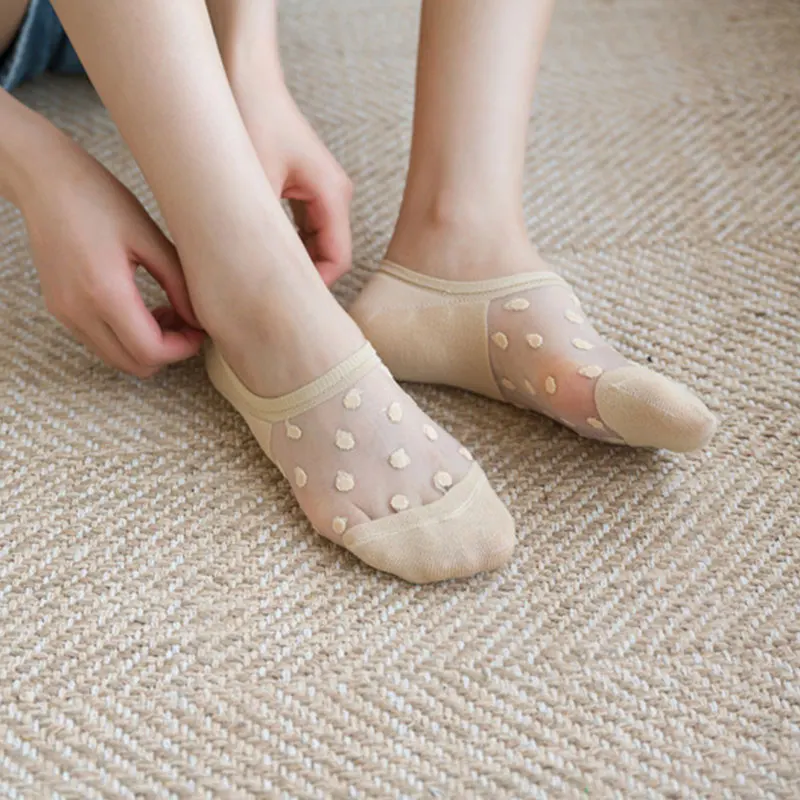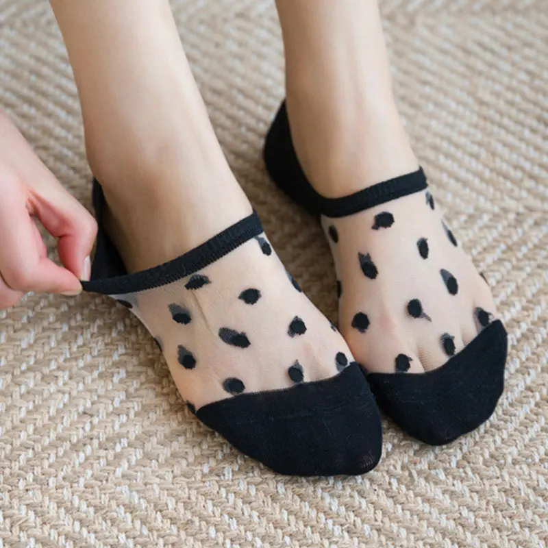 Упаковочный лист: женские носки в горошек с низким вырезом, невидимые носки-башмачки X1 пара
