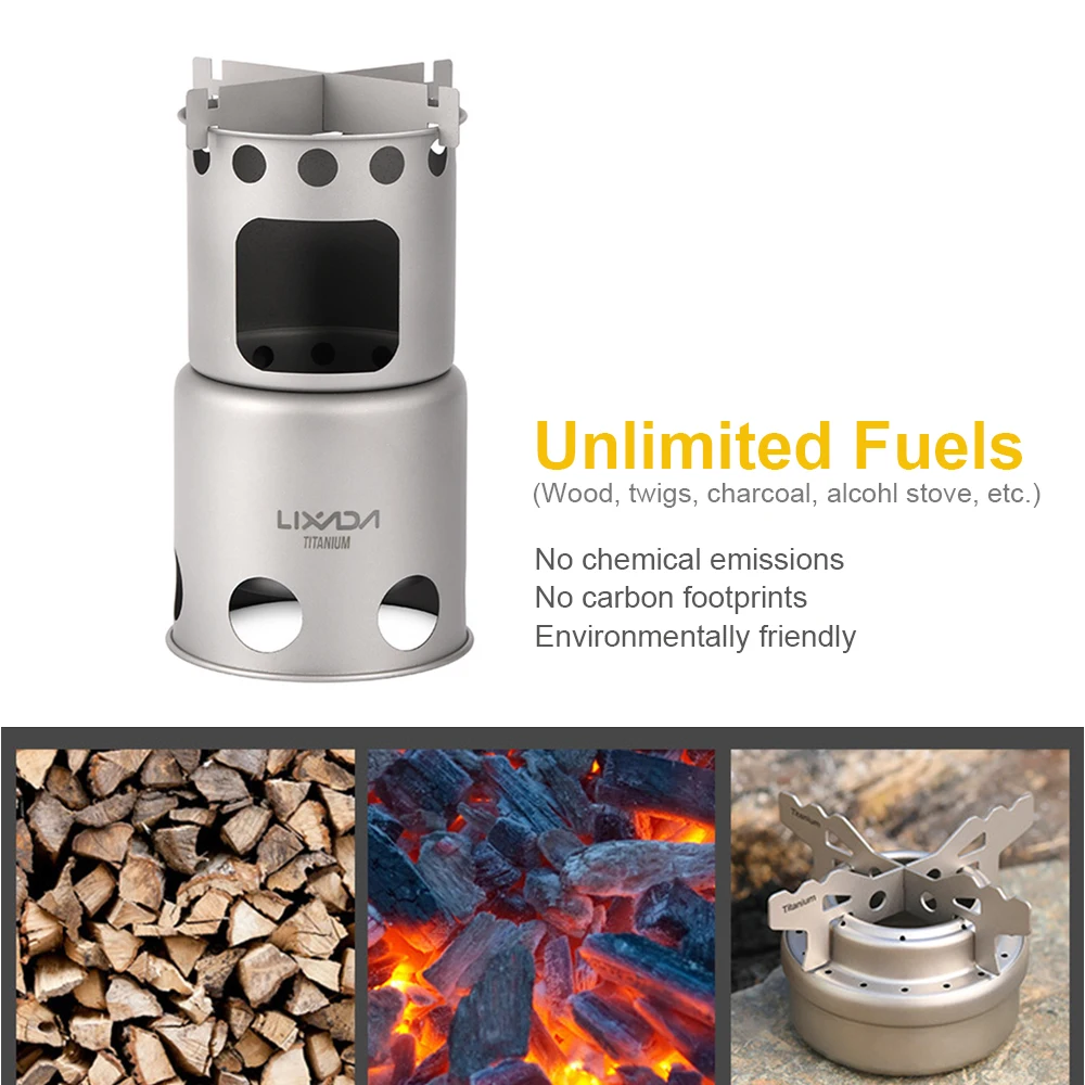 Легко установить и приготовить еду с неограниченным количеством топливо: дерево, ветки, ветви, листья, без химических выбросов.