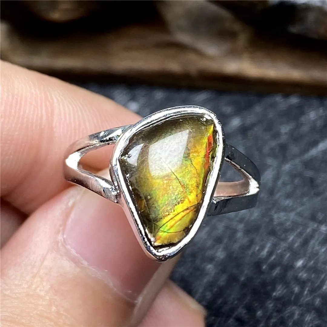 Натуральное зеленое аммонитное кольцо аммолита для женщин и мужчин, подарок на любовь, 15x11 мм, бусины, хрустальный камень, серебро, регулируемые ювелирные изделия, AAAAA, Прямая поставка