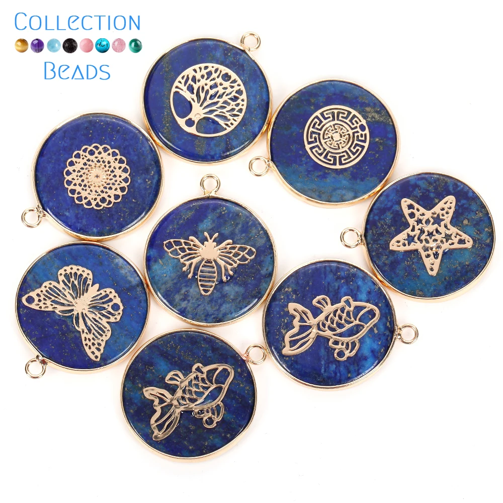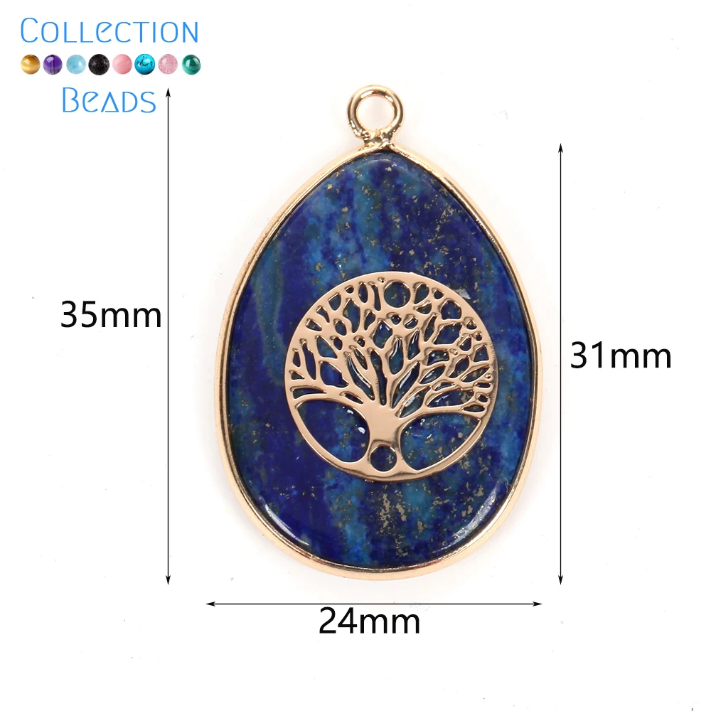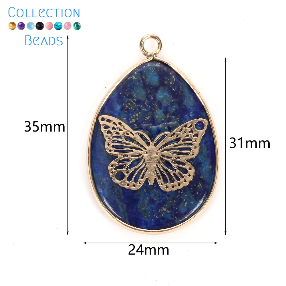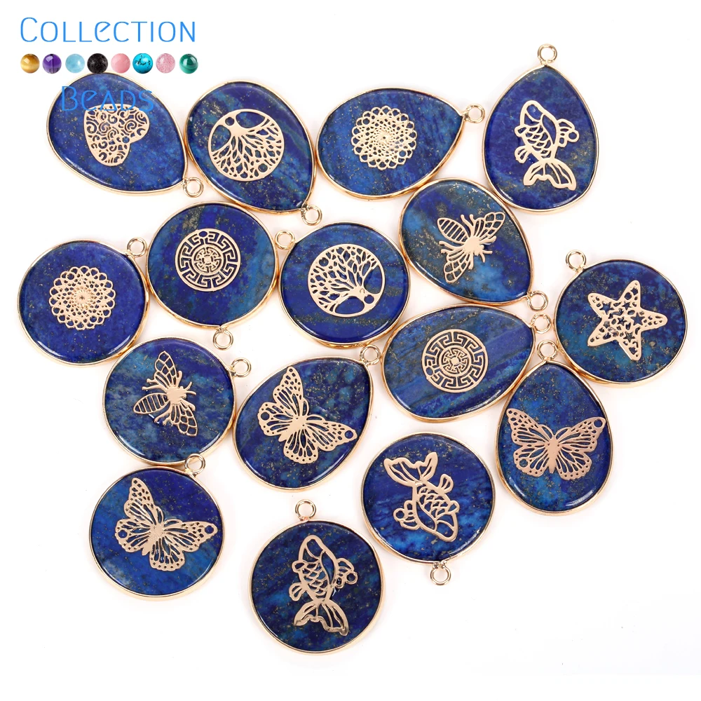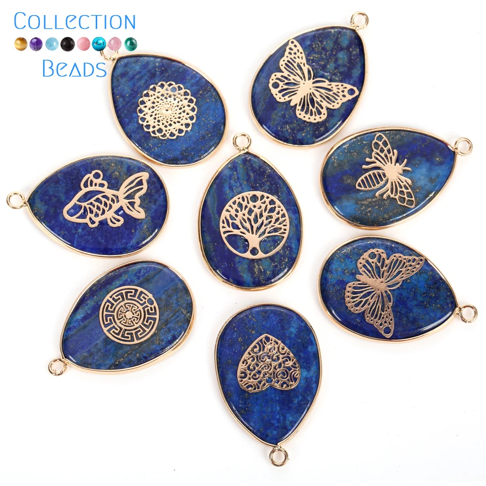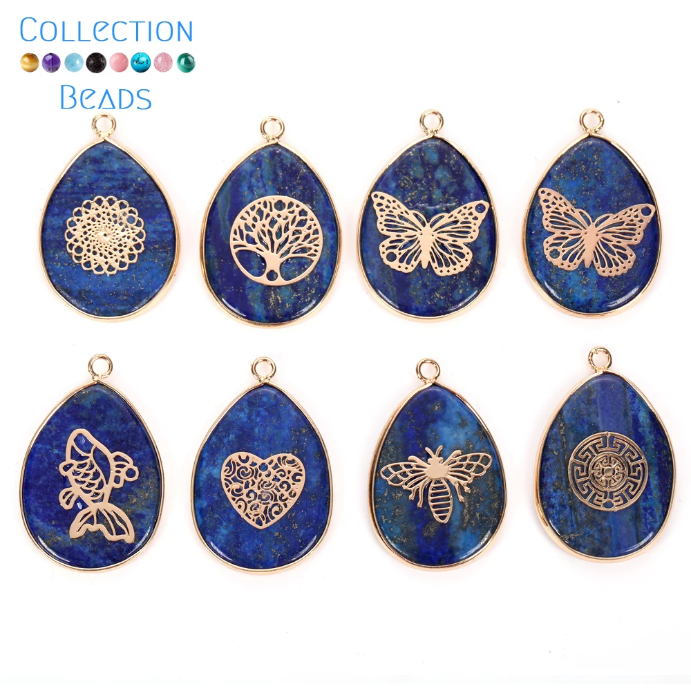 1pc 24x35mm Natural Stone Life Tree Butterfly Bee Flower Heart Pendants Lapis Lazuli Charms Jewelry Making DIY Necklaces