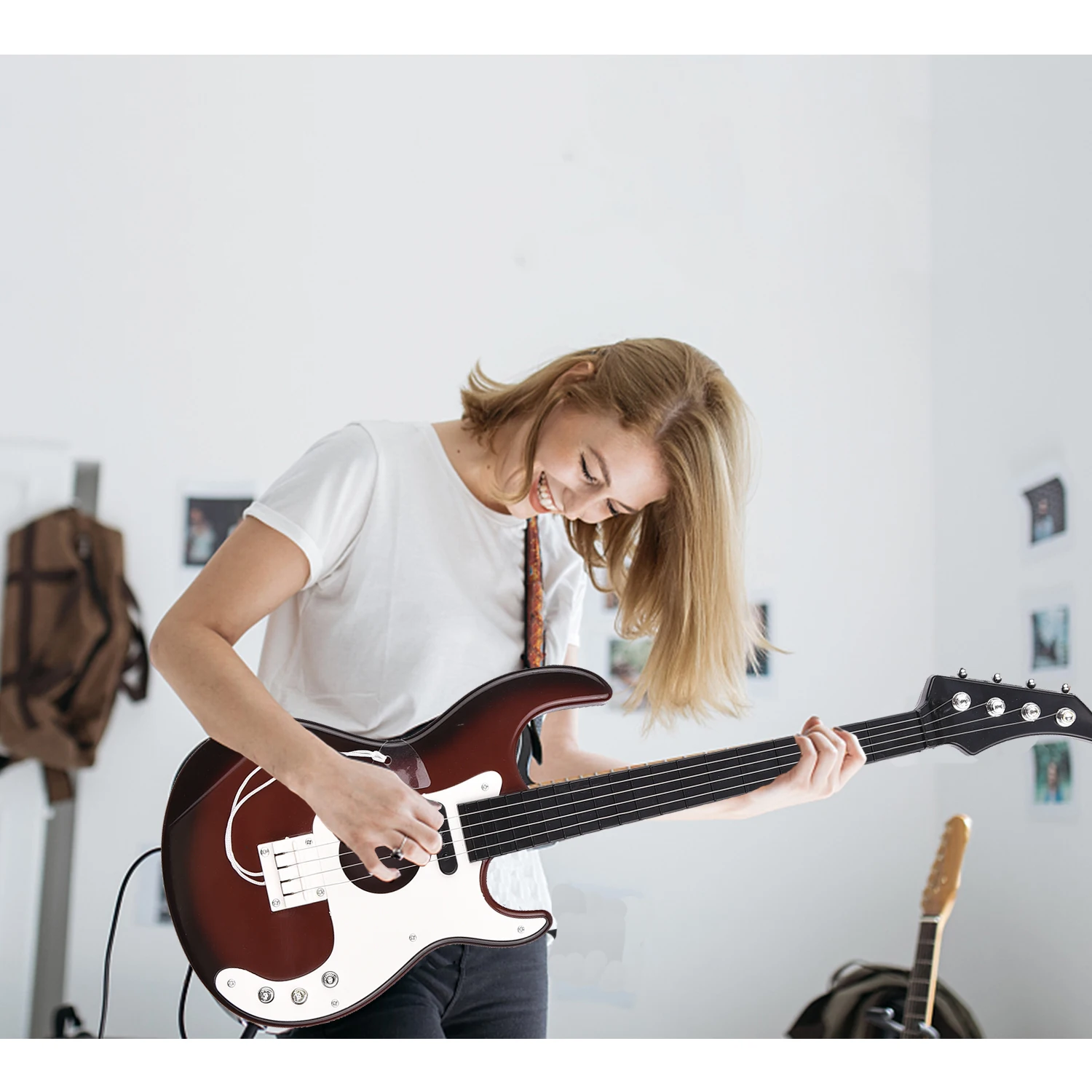 * С компактными размерами и чувствительными струнами, эта имитация бас-гитары идеально подходит для детей или начинающих, чтобы учиться и играть.