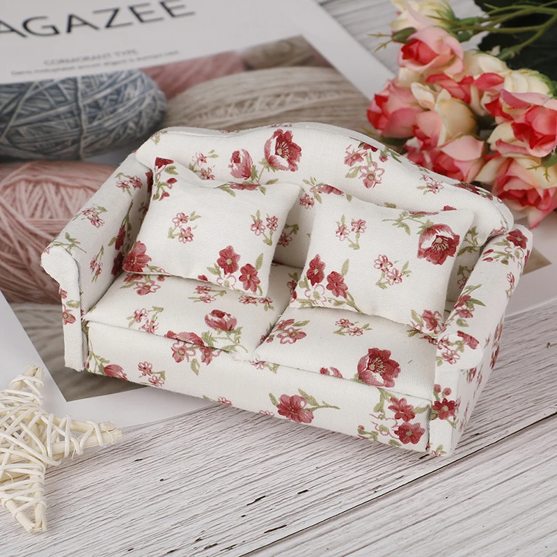 1/12 масштабные диваны и подушки, идеально подходят для внутренней модели; Имитация диванов, украшенных цветочным узором