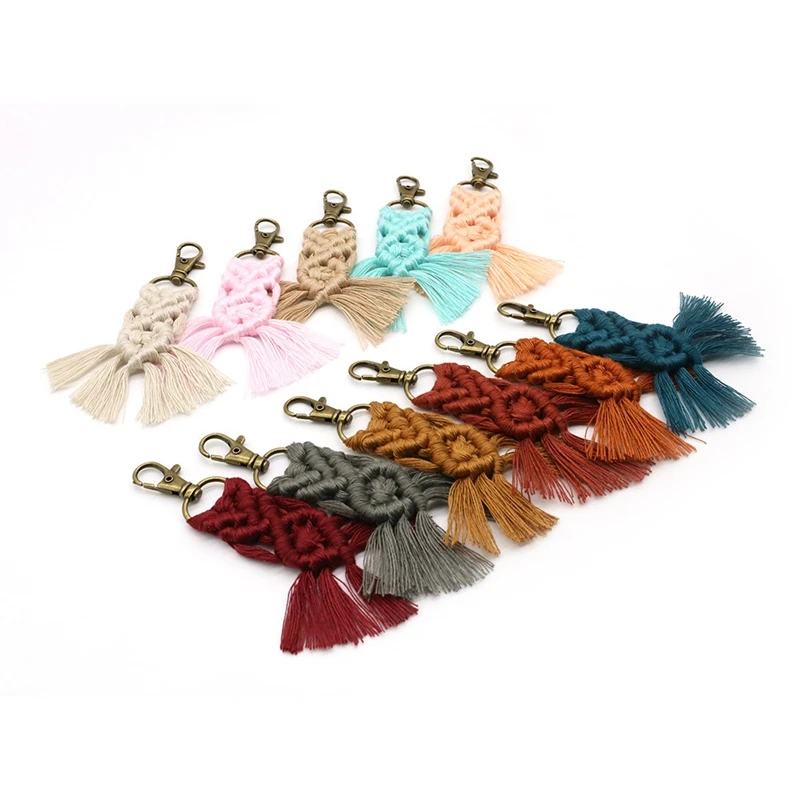 11 x Macrame keychain boho woven