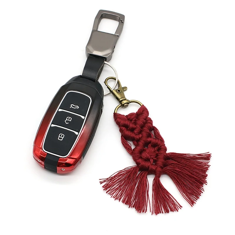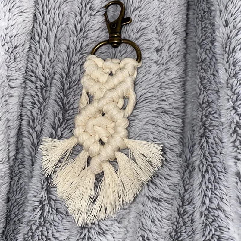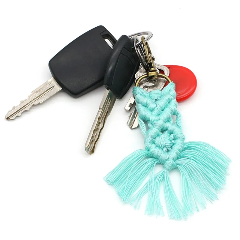 Funny tassel keychain ornaments are suitable for purses, keyrings, backpacks, coin wallet, phone case, or car's rear view mirror. This tiny macrame keychain with tassels is a lively way to identify your keys. Adds bohemian style and simple texture to your personal items become more attractive!