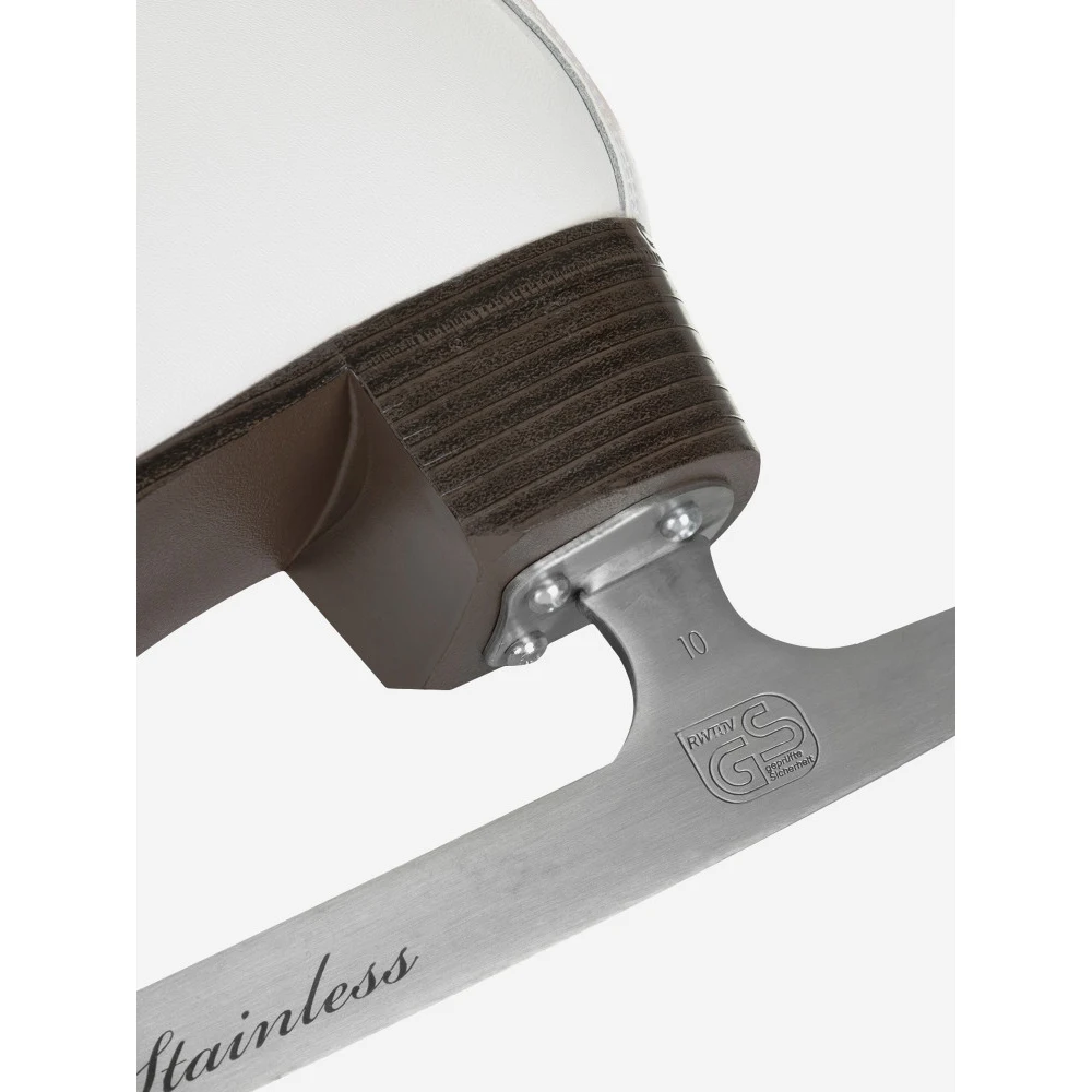 Детали: широкая колодка со вставками под щиколотку, лезвия из нержавеющей стали.