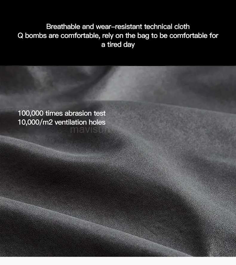 B. Дышащая и износостойкая технологичная ткань, мягкая и удобная сумка для снятия усталости весь день.