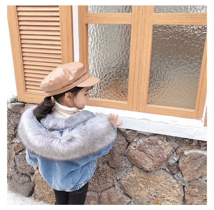 以下款为短款单排扣款式,毛领是仿真大毛领