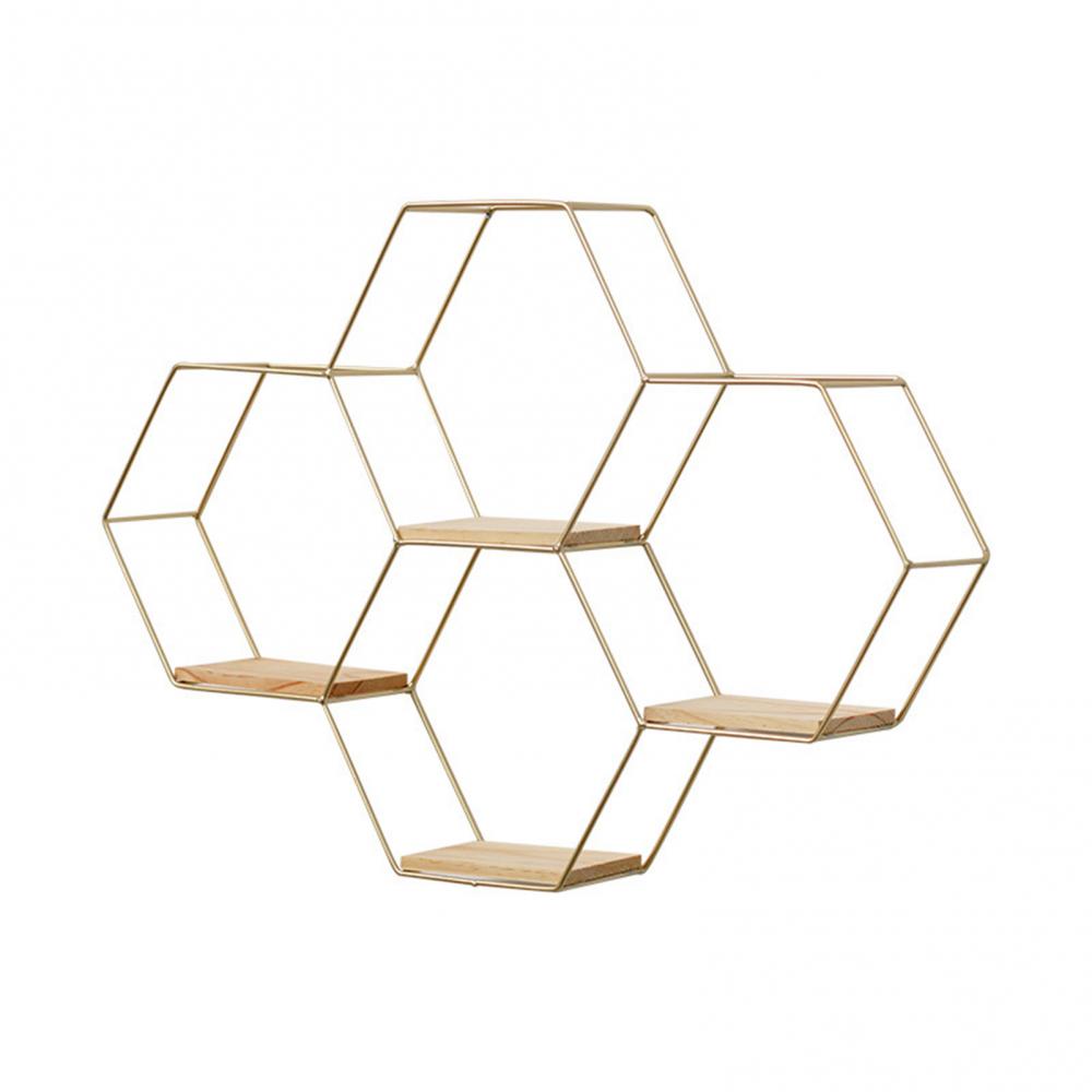 Железная настенная полка в скандинавском стиле, украшение, настенная шестиугольная железная стойка, полки для хранения, ТВ фон, спальня, подвеска у кровати