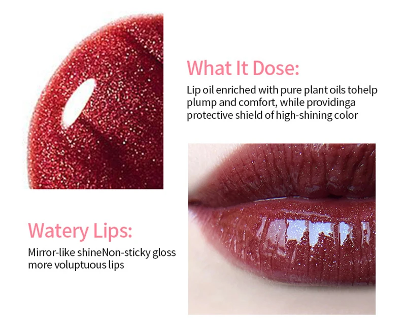 Масло для губ, обогащенное натуральными растительными маслами, помогает пухлым и комфортным, в то время как providinga защитный щит с высоким сияющим цветом