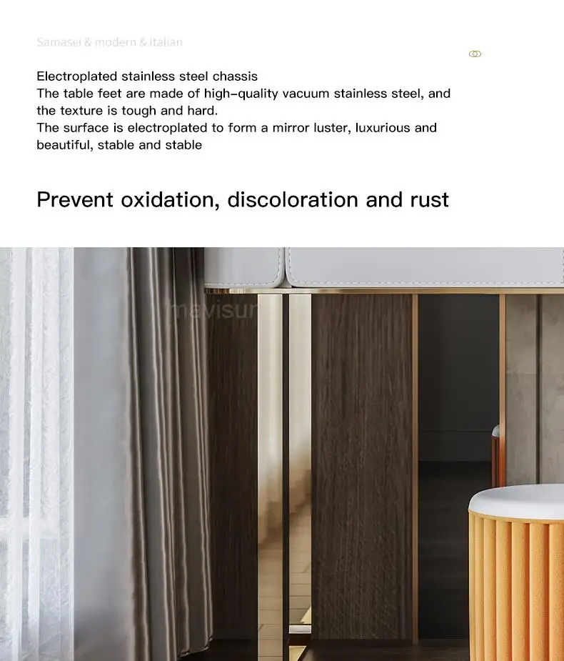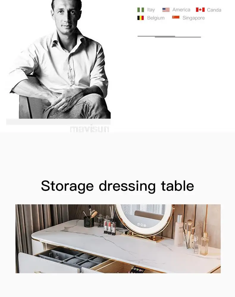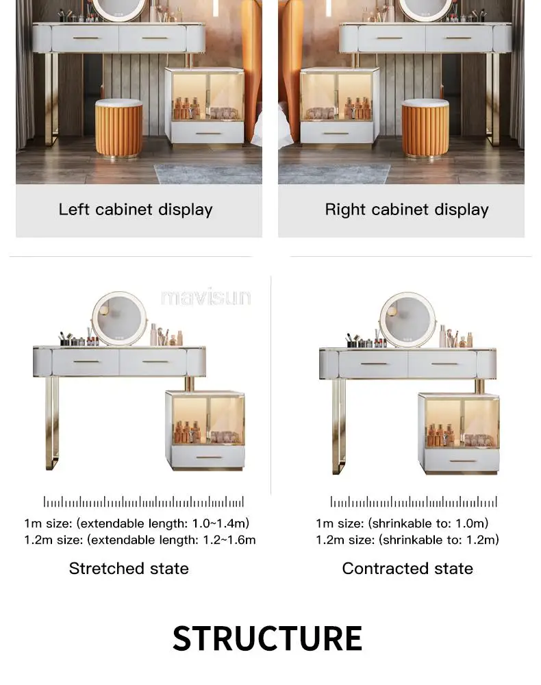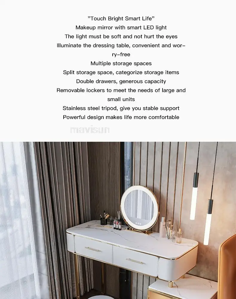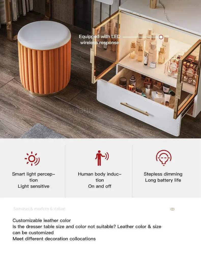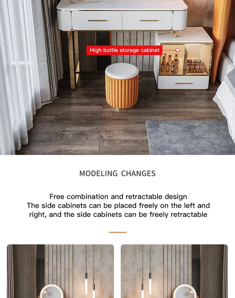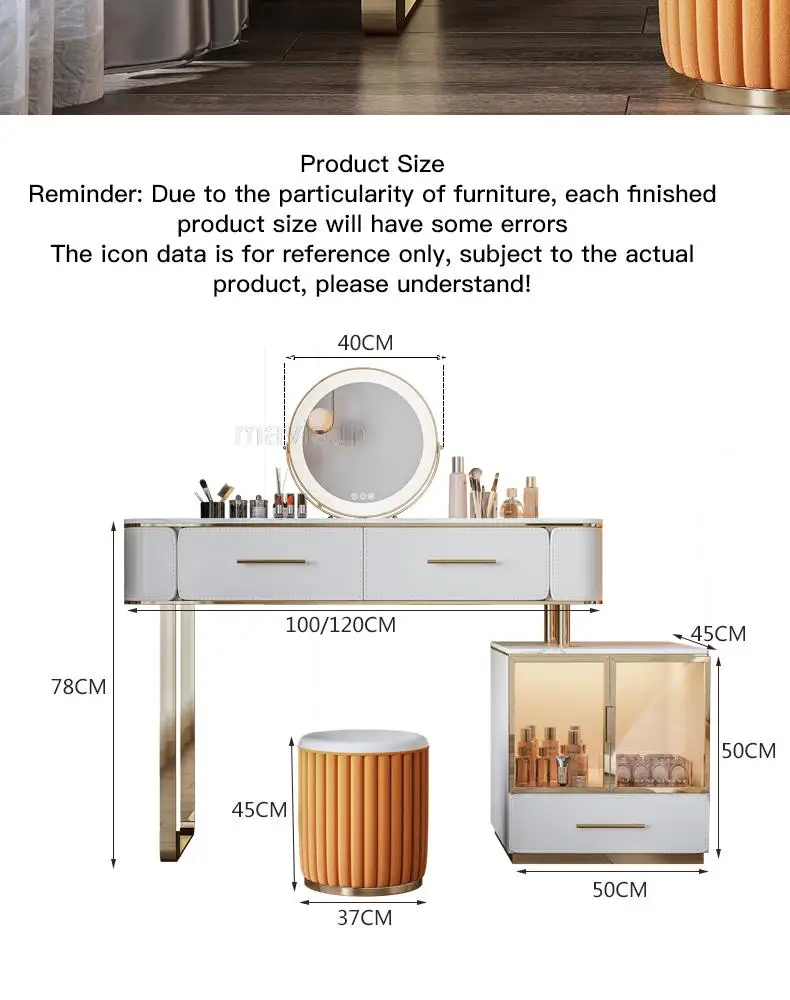 D.Продукт разработан с ящиком для хранения, просторной и большой столешницей, высокой твердостью и легко чистится, чтобы удовлетворить потребности размещения любимых средств по уходу за кожей и макияжу.