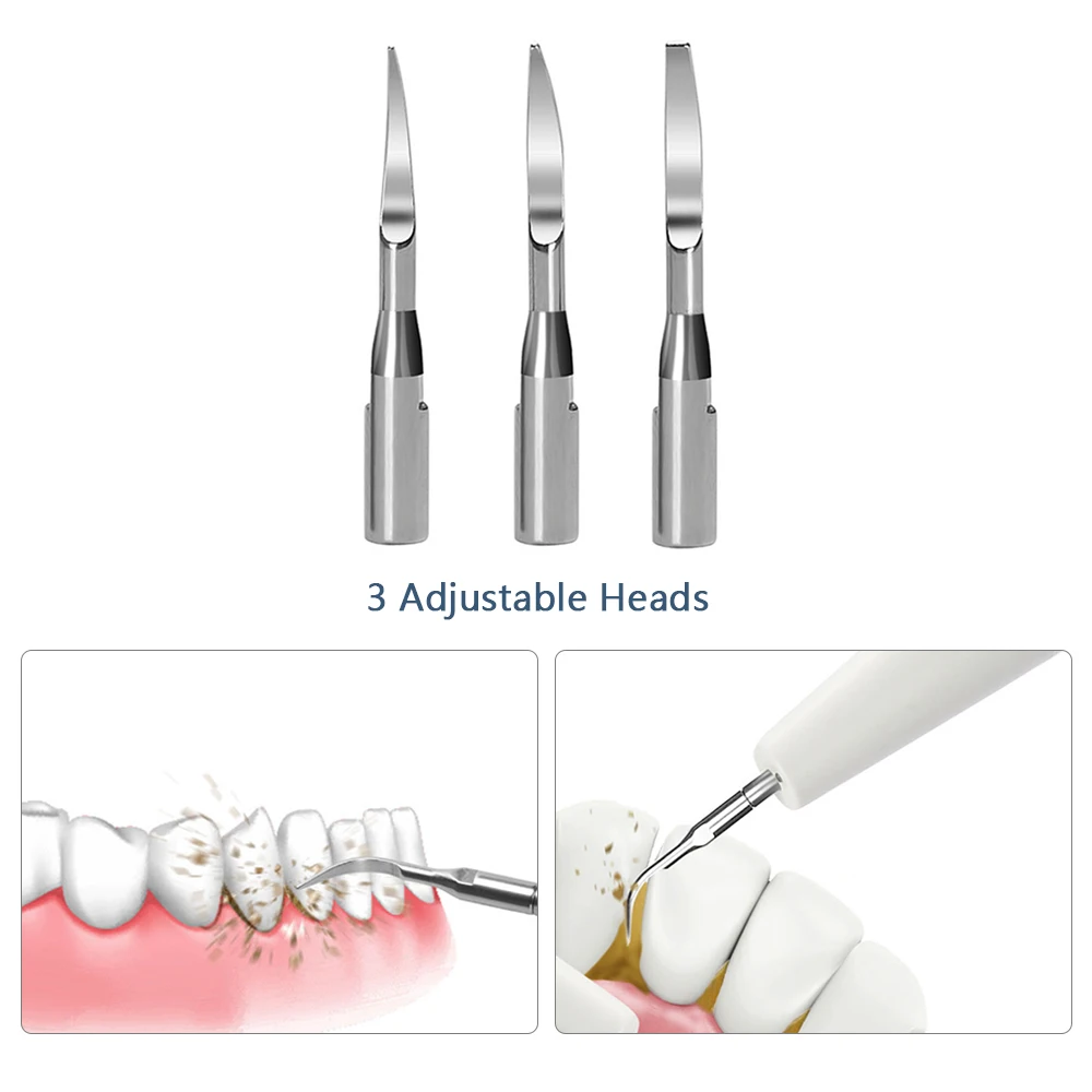 3 головки: специальный очиститель зубов включает в себя Сменные чистящие головки, которые удаляют упрямый налет от скрученных зубов и зубов мудрости.
