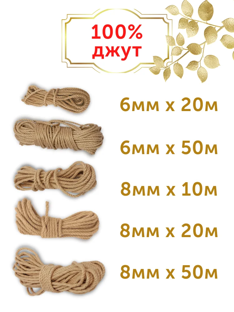 Бечевка или шпагат из джута - это тонкая веревка, скрученная из 2 и более нитей. Джут - это волокна растения, экологически чистый материал, не содержит посторонних примесей и безопасен для здоровья.