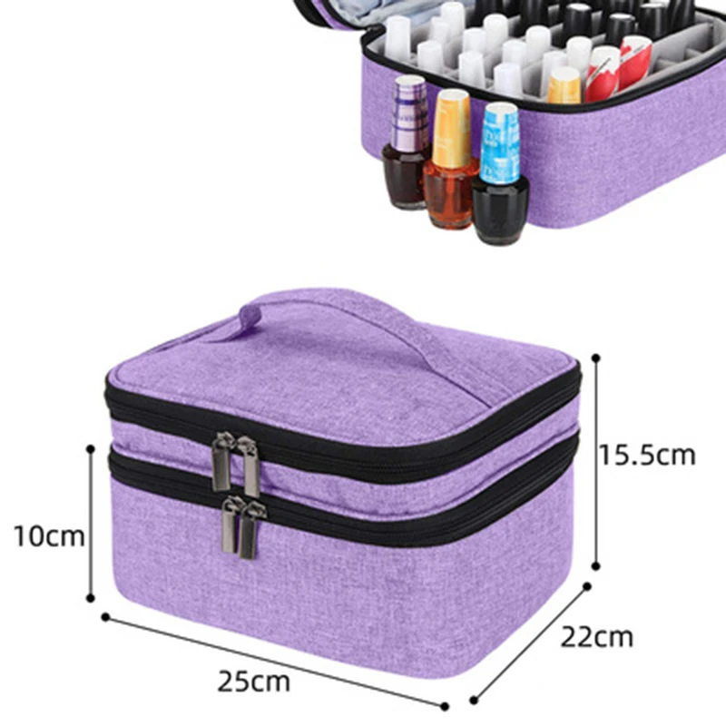 2. Removable Compartment: With the help of the middle zipper, the 2 compartments can be firmly connected. Each compartment with a bottle separator can hold 30 bottles of nail polish (maximum 15 ml).