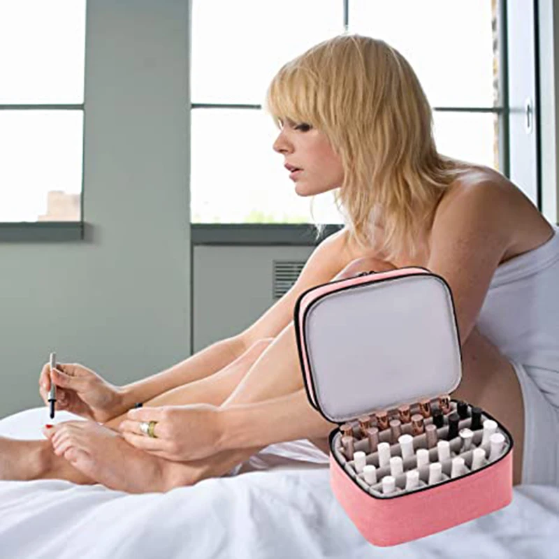 1. High-quality Material: The nail polish carrying bag is made of soft polyester microfiber. The padded inner lining provides good protection for the nail polish bottle.