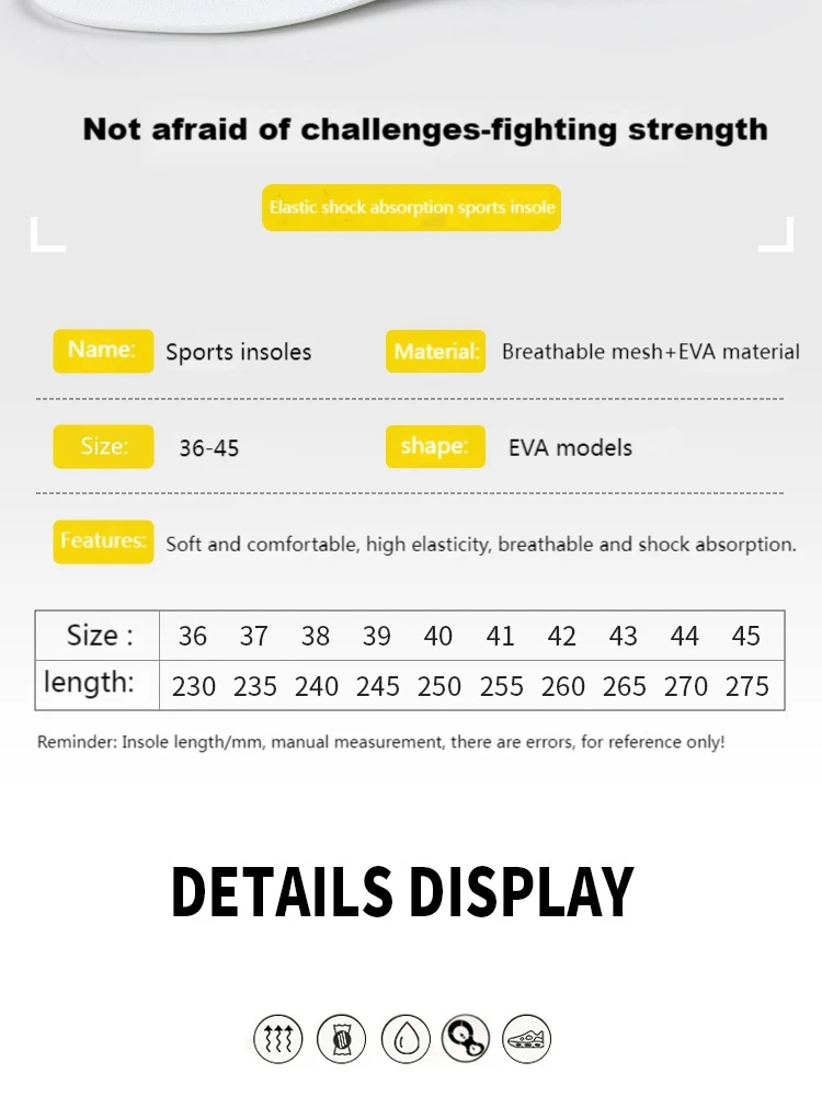 Материал: материал EVA, двойной дышащий и дезодорант, лучший амортизирующий эффект