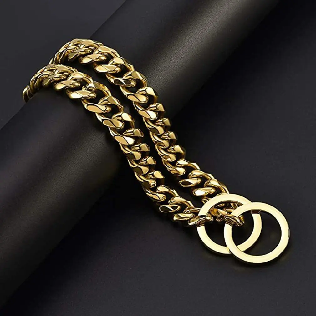 45 см собачий Большой Золотой ошейник с цепочкой металлический большой золотой Летний ошейник для питомца модные аксессуары ошейник для бульдога ожерелье для питомца