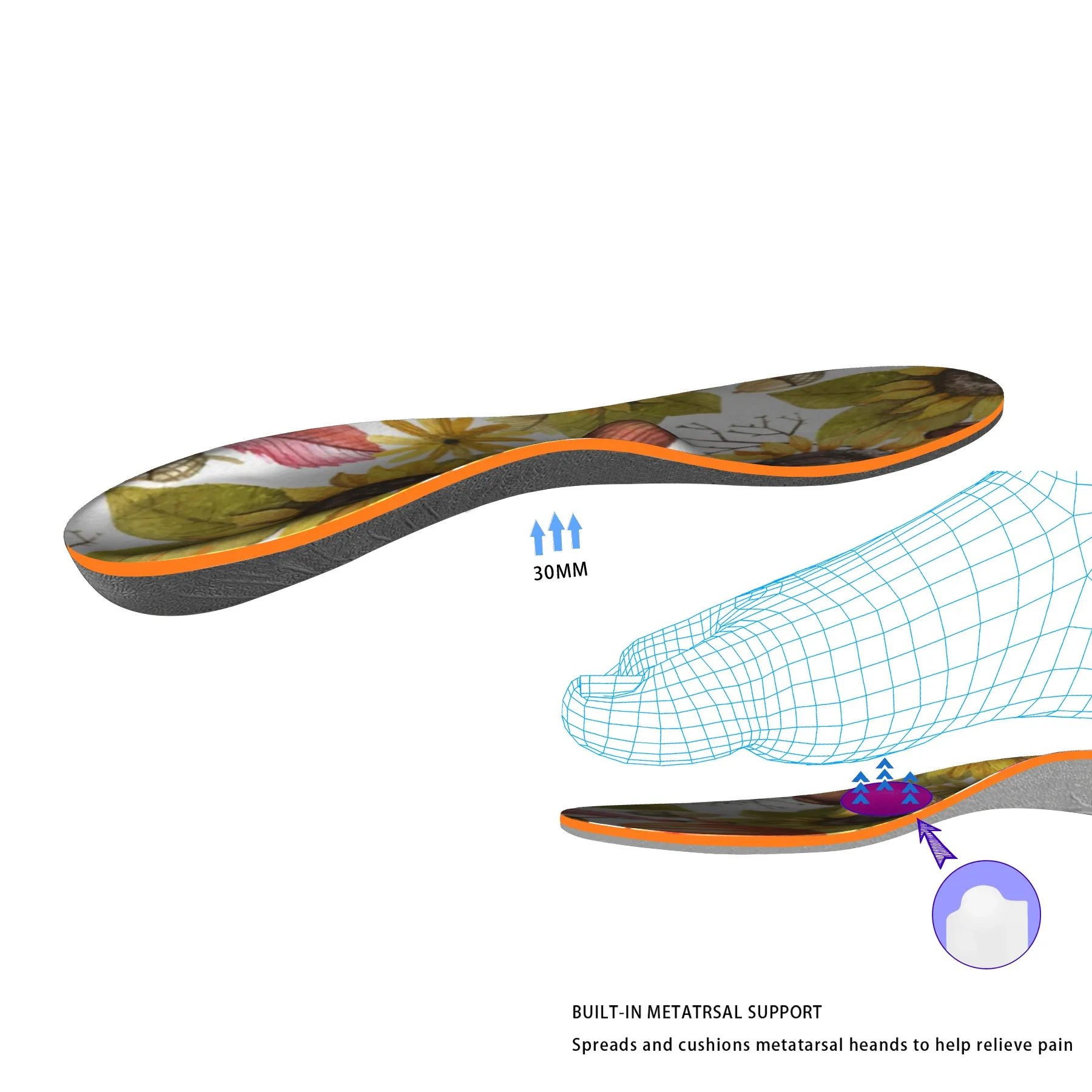 --- Наша пробковая серия добавляет плюсневую подкладку, используя принцип трехточечного баланса, чтобы сбалансировать мощность арки, пятки и Плюсневой арки, что эффективно уменьшает боль в ногах.