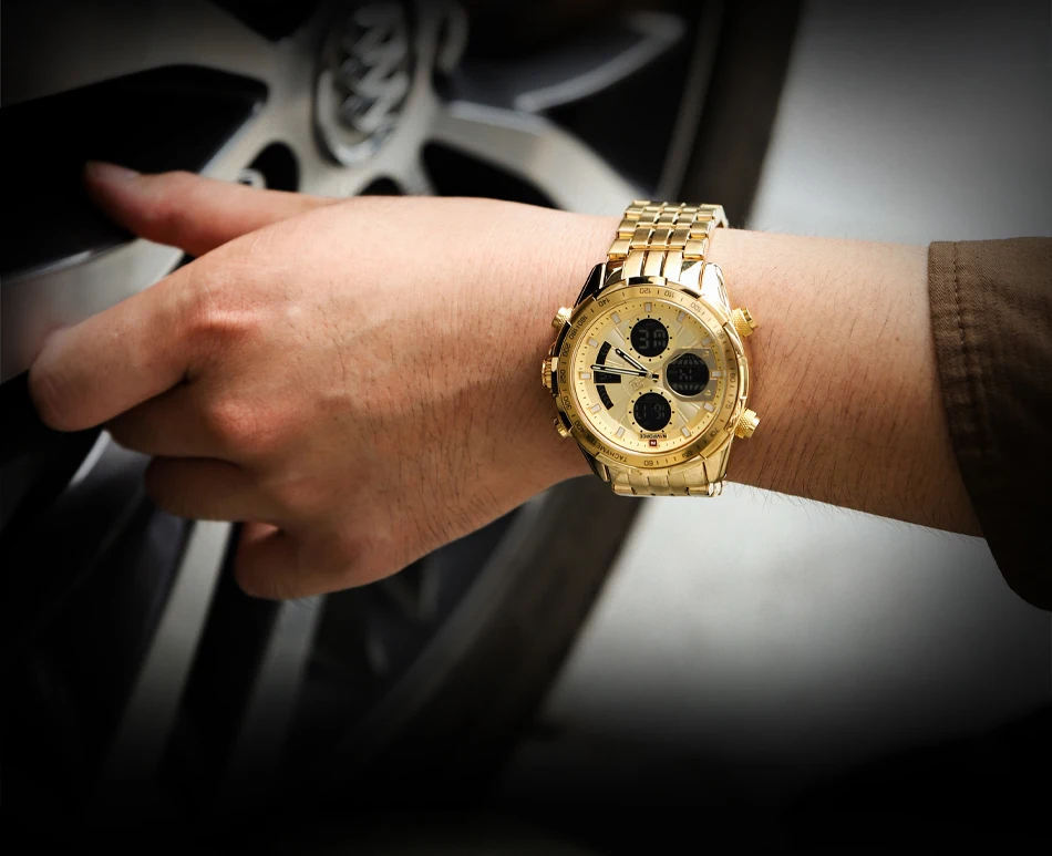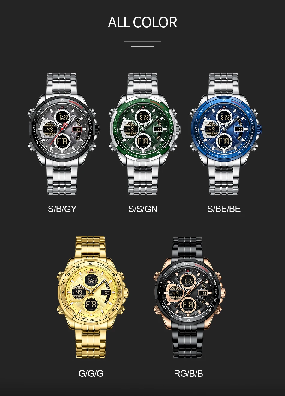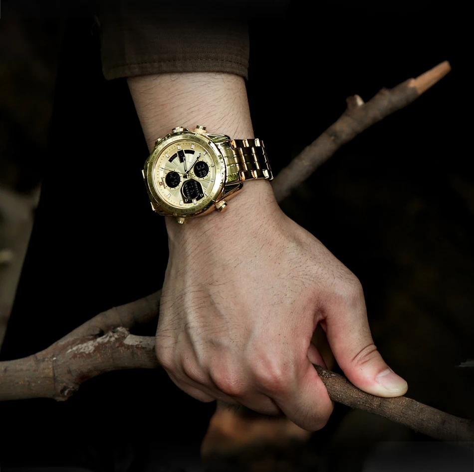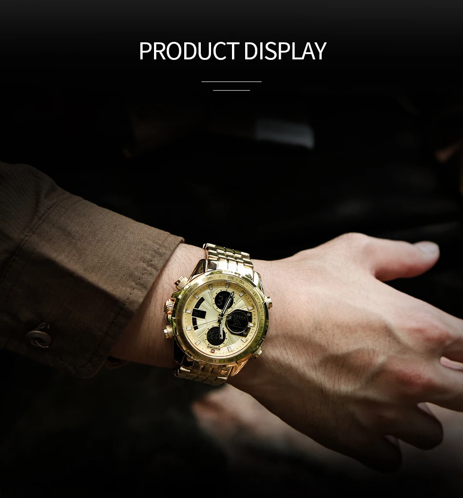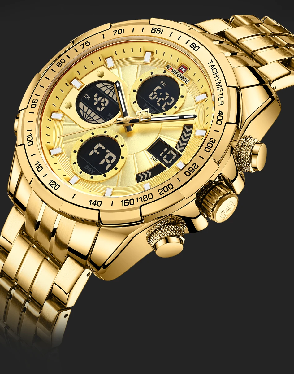 NAVIFORCE мужские Кварцевые Золотые часы Лидирующий бренд мужские спортивные водонепроницаемые наручные часы с хронографом из нержавеющей стали Кварцевые часы мужские часыОписание продукта: