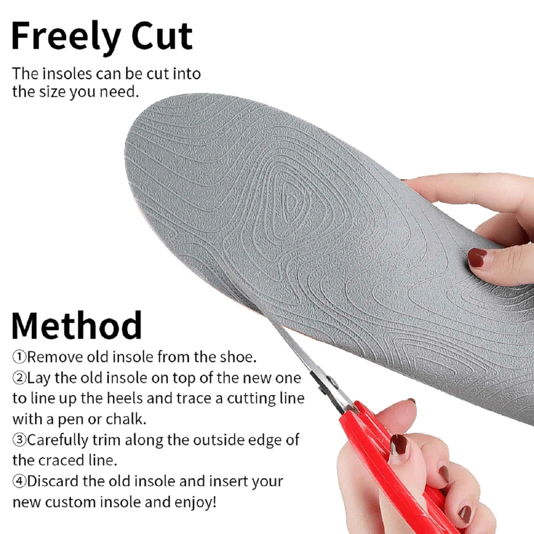 1. Измерьте длину вашей стопы,ЧемЗатемНайдите размер по стельке, слегка обрежьте/НемногоДлиннее ваших ног.