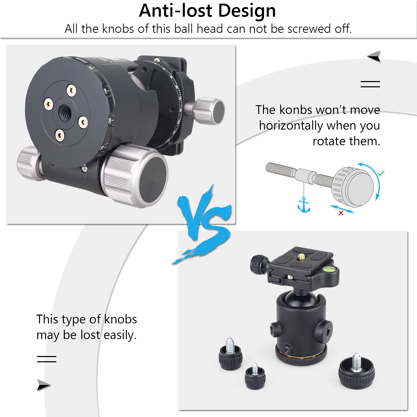 XB54 отличается от обычной шаровой головки, все ручки шариковой головки XB54 не могут быть отвинчены и не будут двигаться горизонтально, когда вы их поворачиваете.