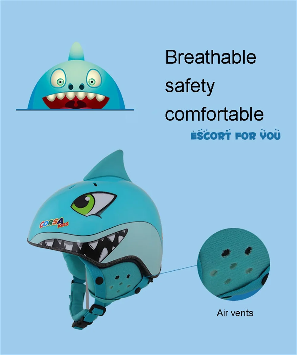 Shark Kids Ski Helmet Integrally-molded Skiing Helmet For Children Boys Snow Helmet Safety Skateboard Snowboard Helmet Brown CORSK