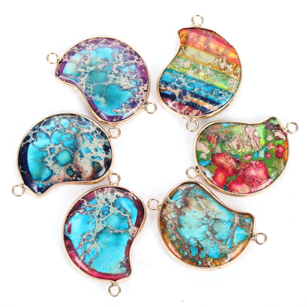 26x40 мм цветной натуральный морской камень из осадочной породы Соединитель с двойным отверстием подвески для ожерелья Браслет аксессуар ручной работы