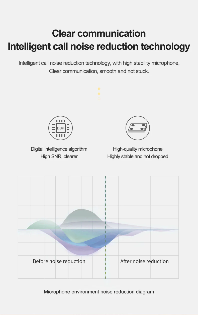 Встроенные высококлассные двойные микрофоны MEMS и технология шумоподавления CVC 6,0 в наушниках для вас, чтобы наслаждаться громкой связью и голосовым ассистентом. Голос поступает от обоих наушников в стереорежиме.