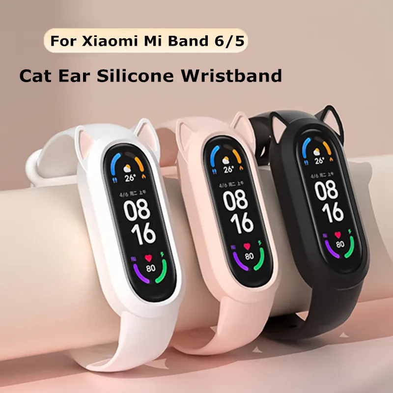 Для Xiaomi Mi Band 6 5 4 3 ремешок кошачий ушной чехол силиконовый ремешок Miband 6 Miband 5 сменный Браслет для Amzazfit Band 5 ремешок