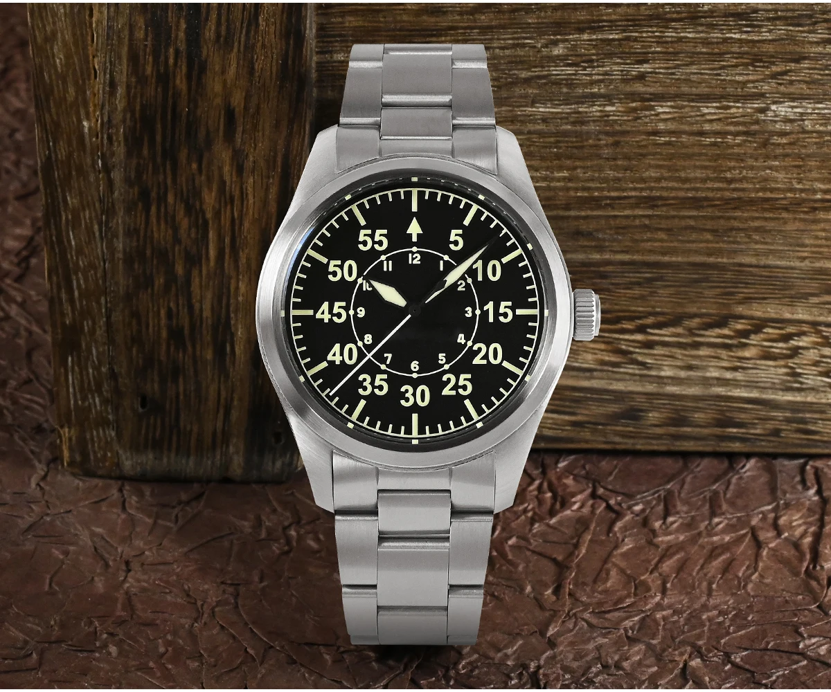 Черный циферблат B с ремешком из нержавеющей стали 316L