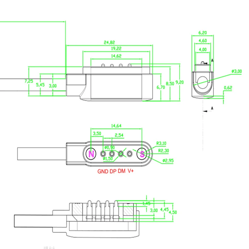 USB 2,0 4pin Pogo Магнитный зарядный кабель для детских умных часов Q750S T88 A20 A20S TD05 V6G магнитное зарядное устройство