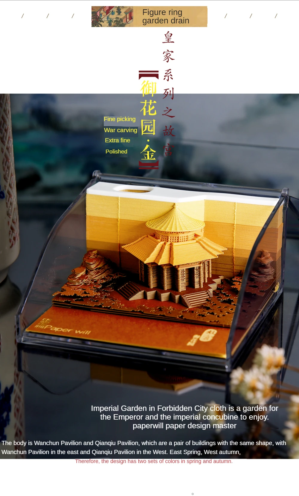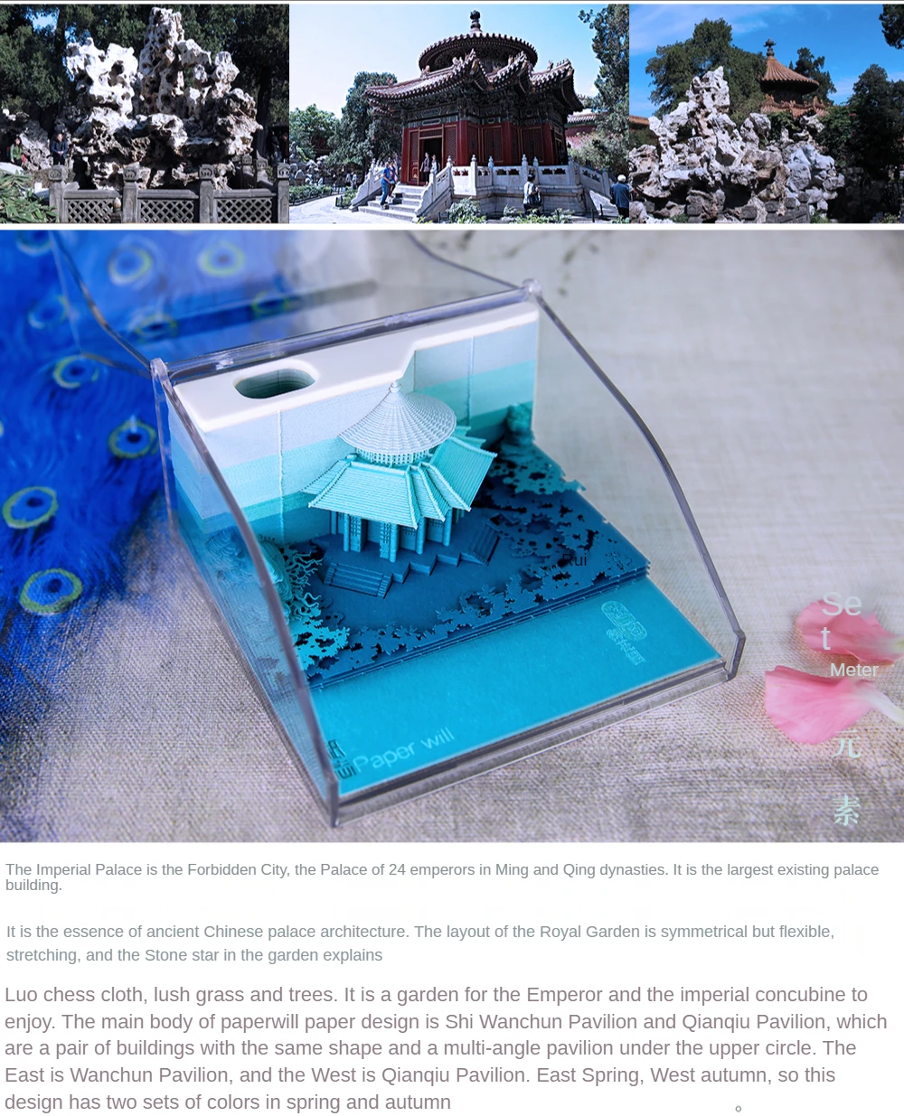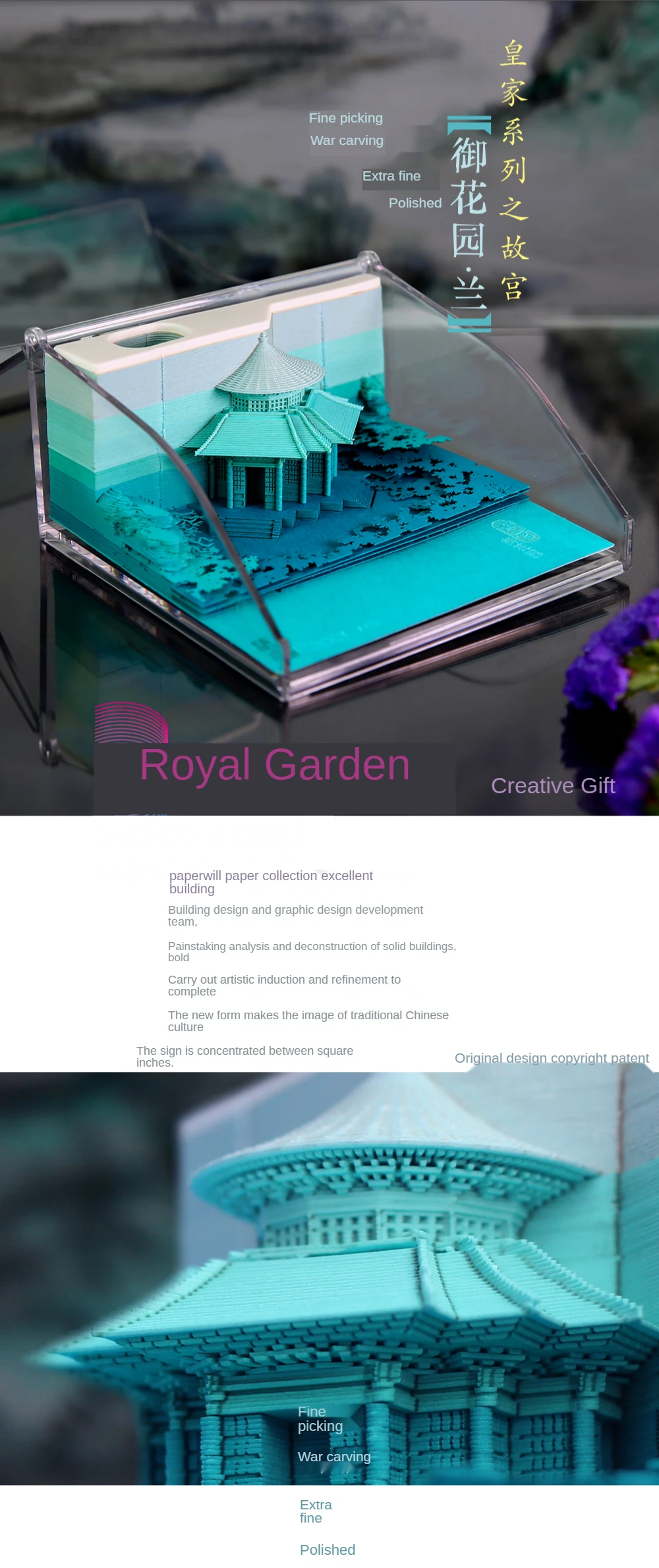 Это так красиво, что это Взрывная 3D Бумага для резьбы. Самая большая изюминка: поскольку бумага для заметок оторвана, постепенно появляется Скрытая резьба по бумаге. После разрыва последнего, там будет красивая бумажная скульптура, в том числе Известные здания, пианино, автомобили, Токийская башня, Великая стена, башни, арочные павильоны, Chihiro суповый дом, qingshui храм, желтый кран башня и т. Д.
