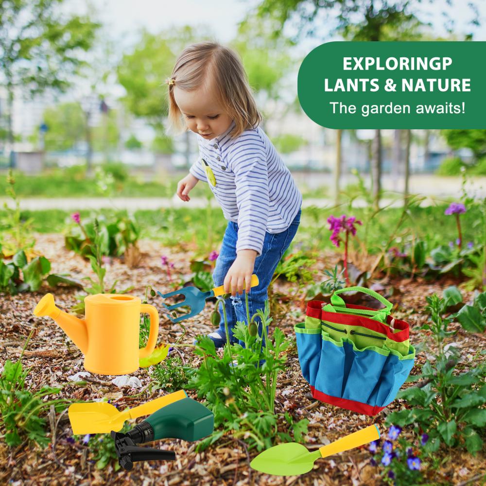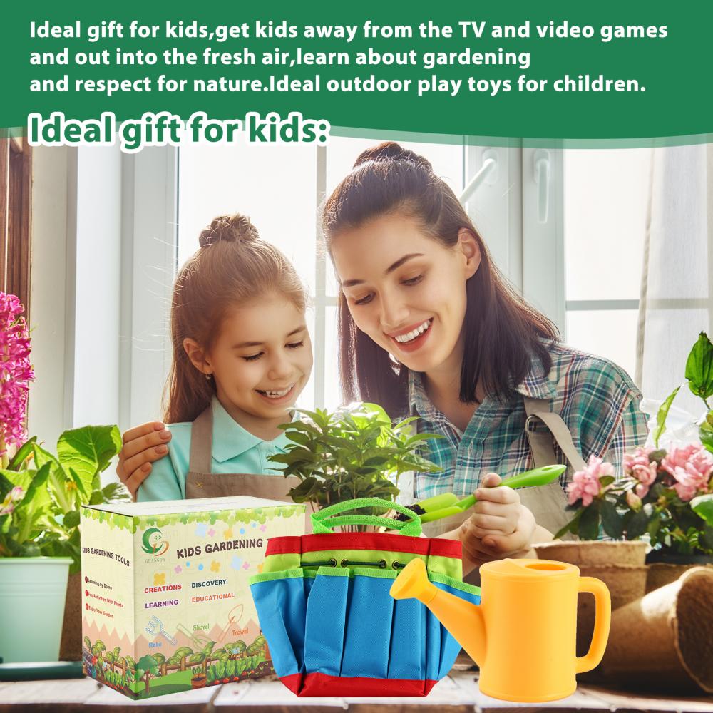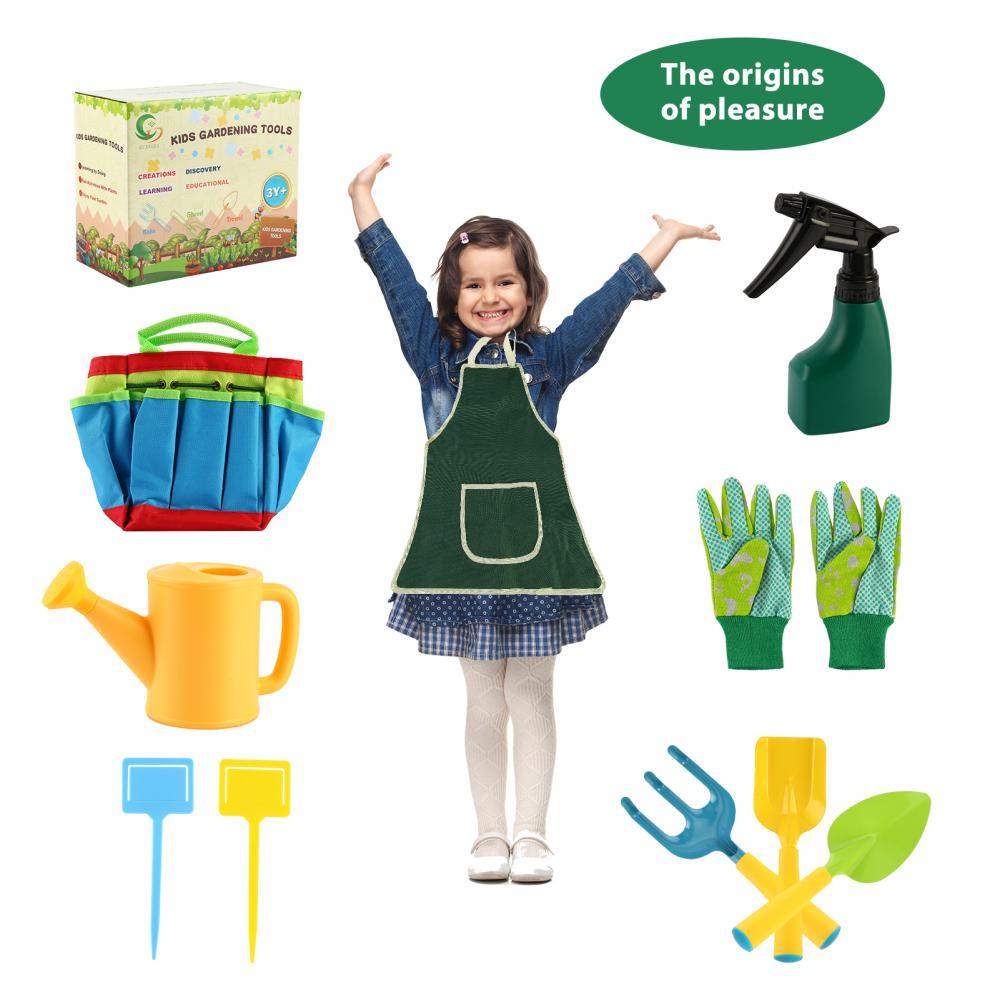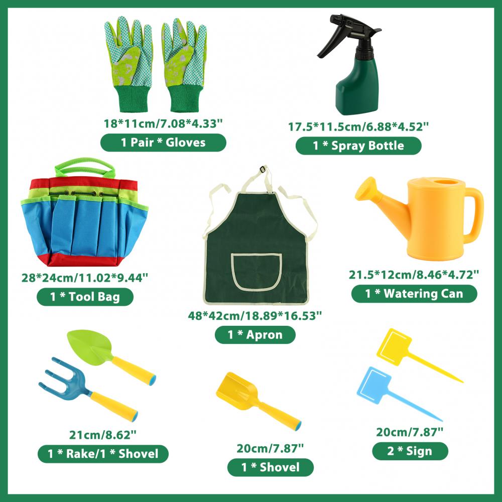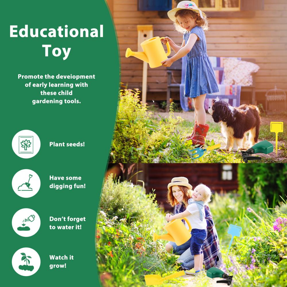 Все в одном наборе: Этот мини-набор инструментов для садоводства содержит все в течение нескольких часов веселья на заднем дворе или на пляже для маленького садовника. Дети узнают гораздо больше о природе, чем просто садоводство. Он содержит холщовую сумочку, квадратную лопату, треугольную лопату, грабли, Детский фартук, чайник, лейки, детские перчатки и карты растений.