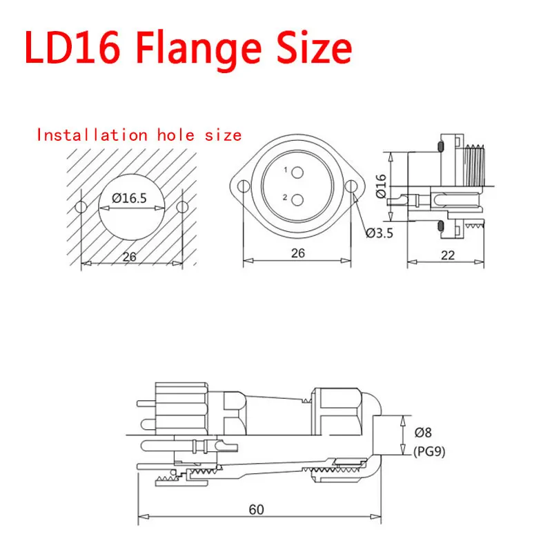 LD16 IP68 Водонепроницаемый соединитель розетка задняя гайка стыковочный фланец 2 pin 3 pin 4 pin обжимной винт без сварочного соединителя