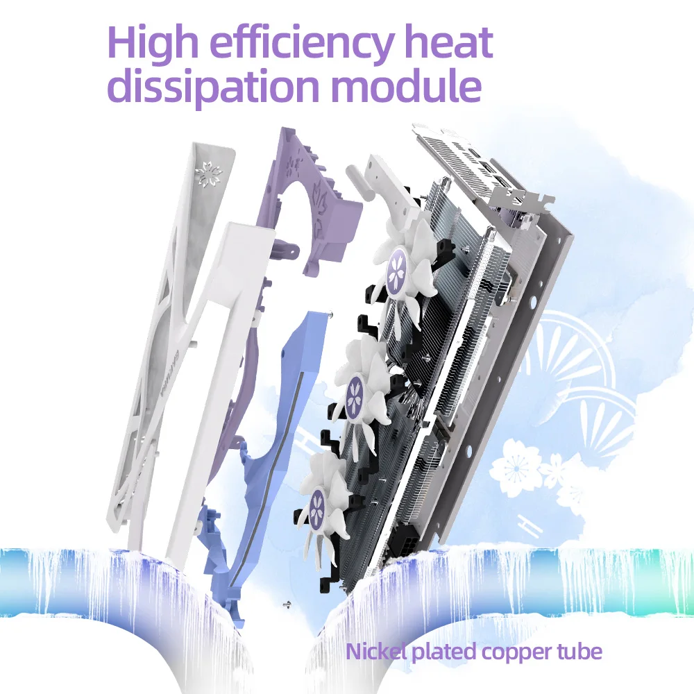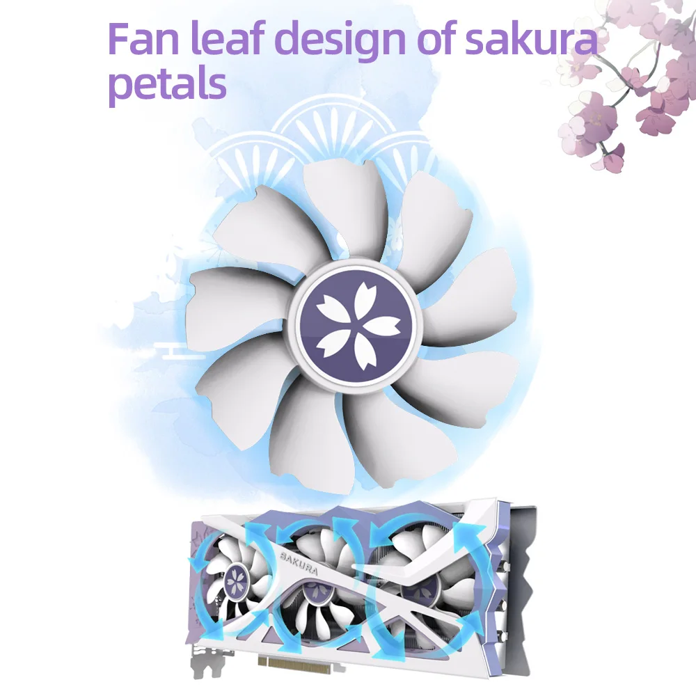 Дизайн 3 вентиляторов, лопасти вентилятора в форме лепестков сакуры обеспечивают больший поток воздуха в сочетании с 6 никелированными медными трубками, вы будете наслаждаться прохладной и тихой игрой.