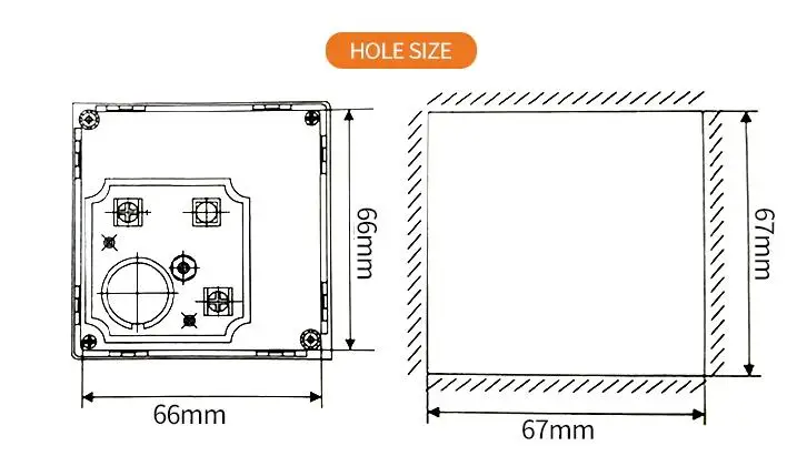 Размер отверстия: см. Следующую фигуру