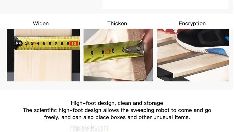 D. Научный дизайн с высокой стопой позволяет подметать робота, чтобы прийти и пойти свободно, а также может разместить коробки и другие необычные предметы.