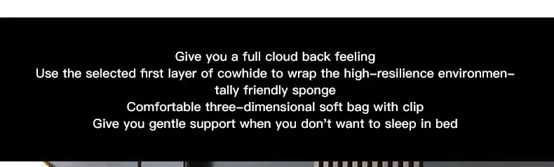 A. Изделие изготовлено из отборной первослойной воловьей кожи, обернуто высококачественной экологически чистой губкой и удобной трехмерной мягкой сумкой с зажимом. Если вы не хотите спать на кровати, это даст Вам нежную поддержку.