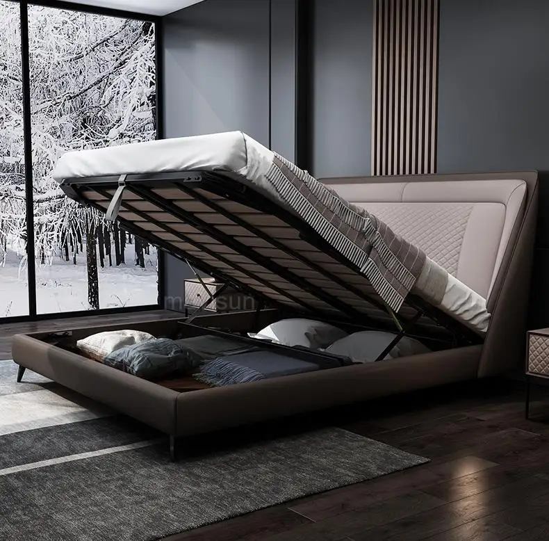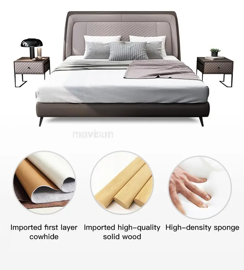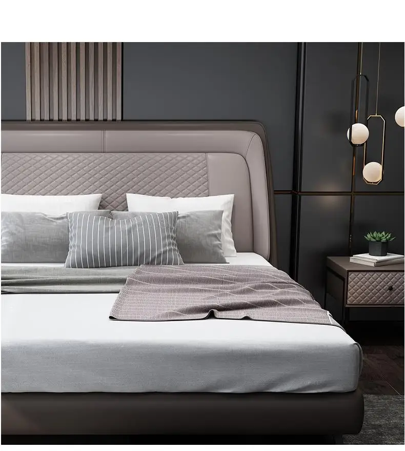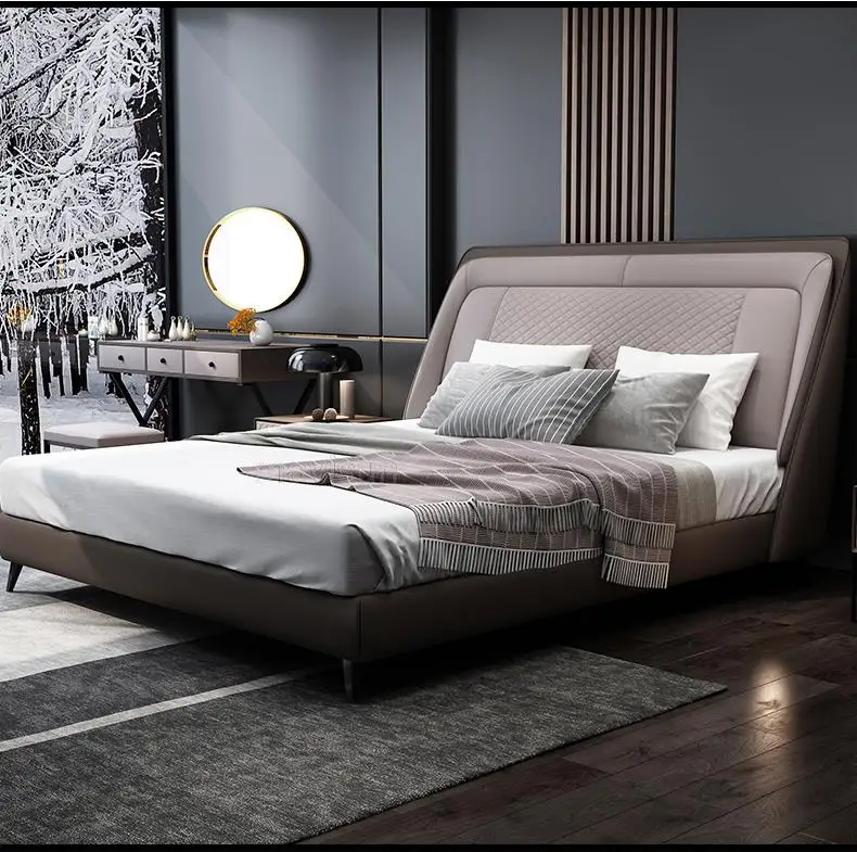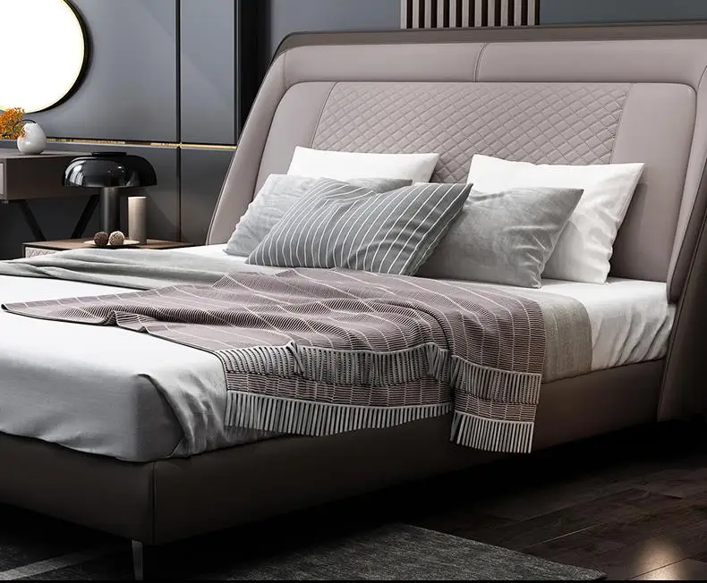 Итальянская роскошная кровать, спальня высокого класса, атмосфера, два человека, современный минимализм, настоящая кожа, персонализированная Свадебная кровать